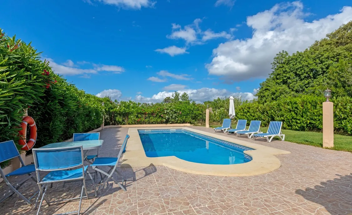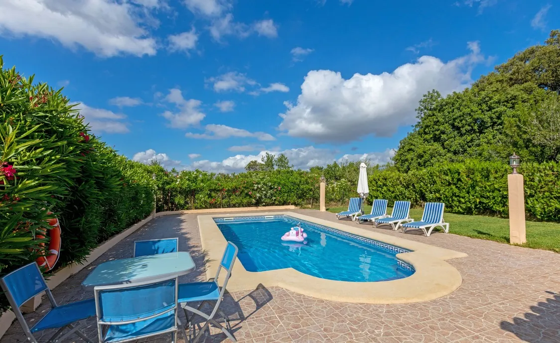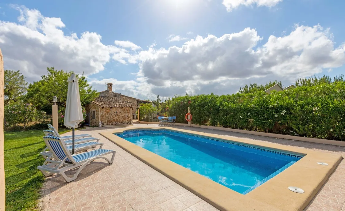Dieses Haus ist ideal geeignet für eine Familie mit kleinen Kindern, da der Pool (9*4 Meter) komplett eingezäunt ist.Im Inneren des Hauses wurde der typisch mallorquinische Stil mit modernen Elementen verbunden und verströmt Wärme und Gemütlichkeit. Auf der schönen überdachten Terrasse werden Sie sicherlich herrliche Abende bei einem gutem Glas Wein verbringen.