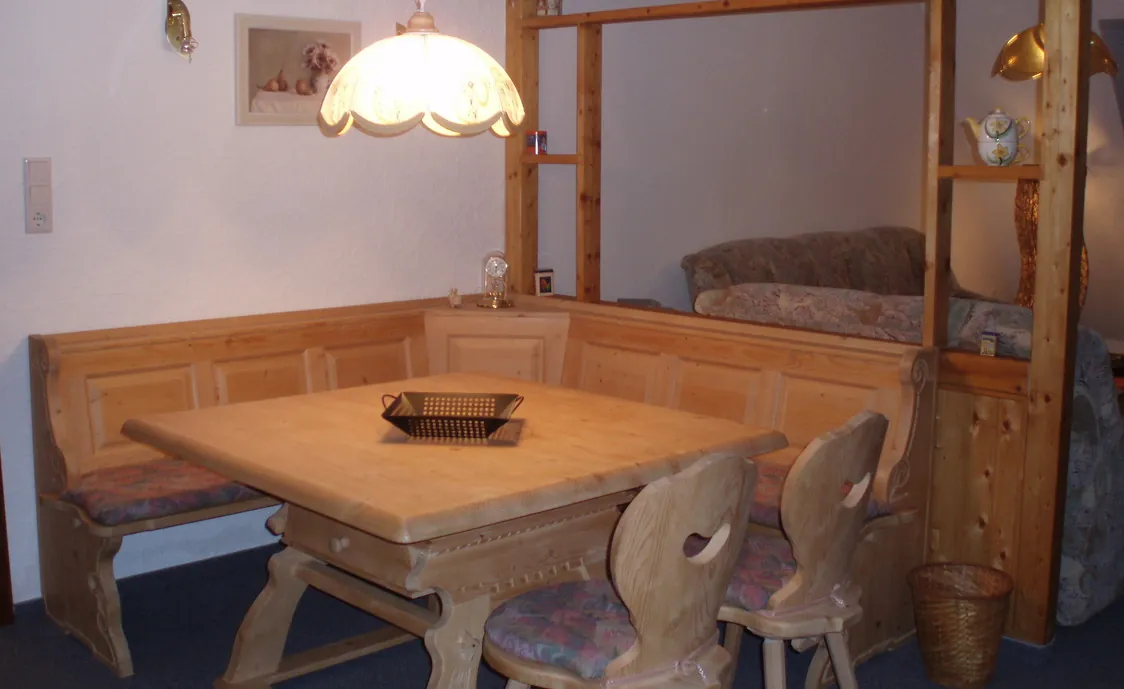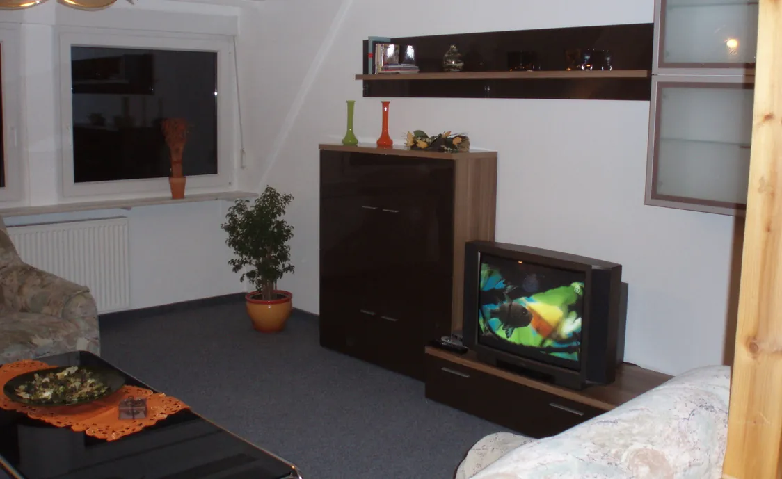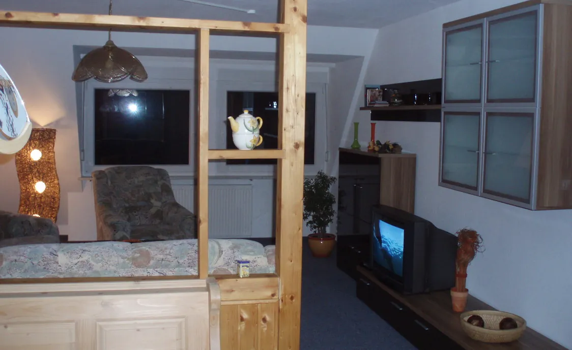 Es umfasst ein wohnlich eingerichtetes Wohnzimmer mit einem zum Doppelbett umfunktionierendem Couch. TV, Radio mit CD, WLAN. ein geräumige Ess.- und Arbeitsecke mit großem Tisch, Eckbank und 2 Stühlen, ein separates Schlafzimmer mit Doppelbett (elektr. verstellbaren Lattenrosten u. 4 Jahreszeitenbetten) kostenlose Bettwäsche. Kompl. eingerichtete Küche mit E-Herd, Kühl.- Gefriekombination, Spülmaschine, Kaffeemaschine, Toaster, Wasserkocher und für 6 Personen Geschirr. Ein Badezimmer mit Badewanne, seperater Dusche, WC, Föhn und kostenlose Handtücher. Auf Wunsch Beistellbett, Kinderbett, und 2 Kinderhochstühle verfügbar.