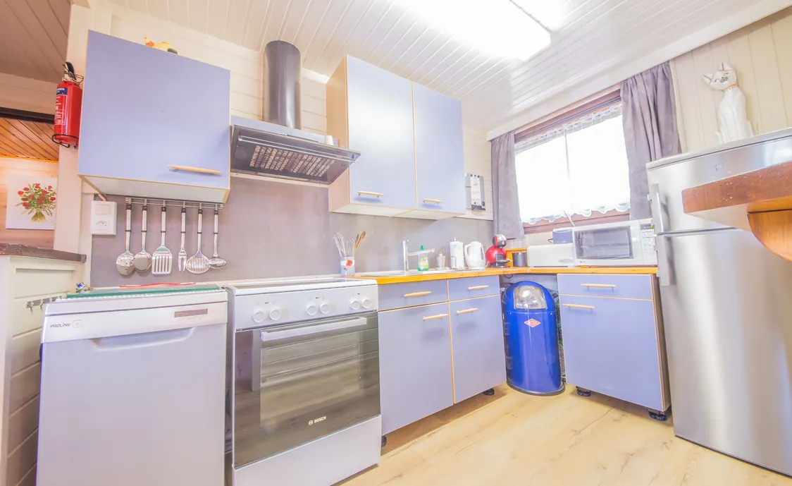 - Ausstattungen: Backofen, Gefrierschrank, Geschirr und Besteck, Geschirrspüler, Haartrockner, Kaffeemaschine, Kochplatten, Küchenutensilien, Mikrowelle, Toaster