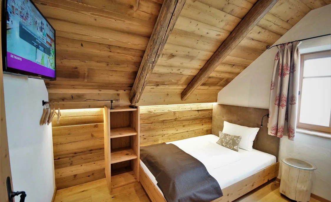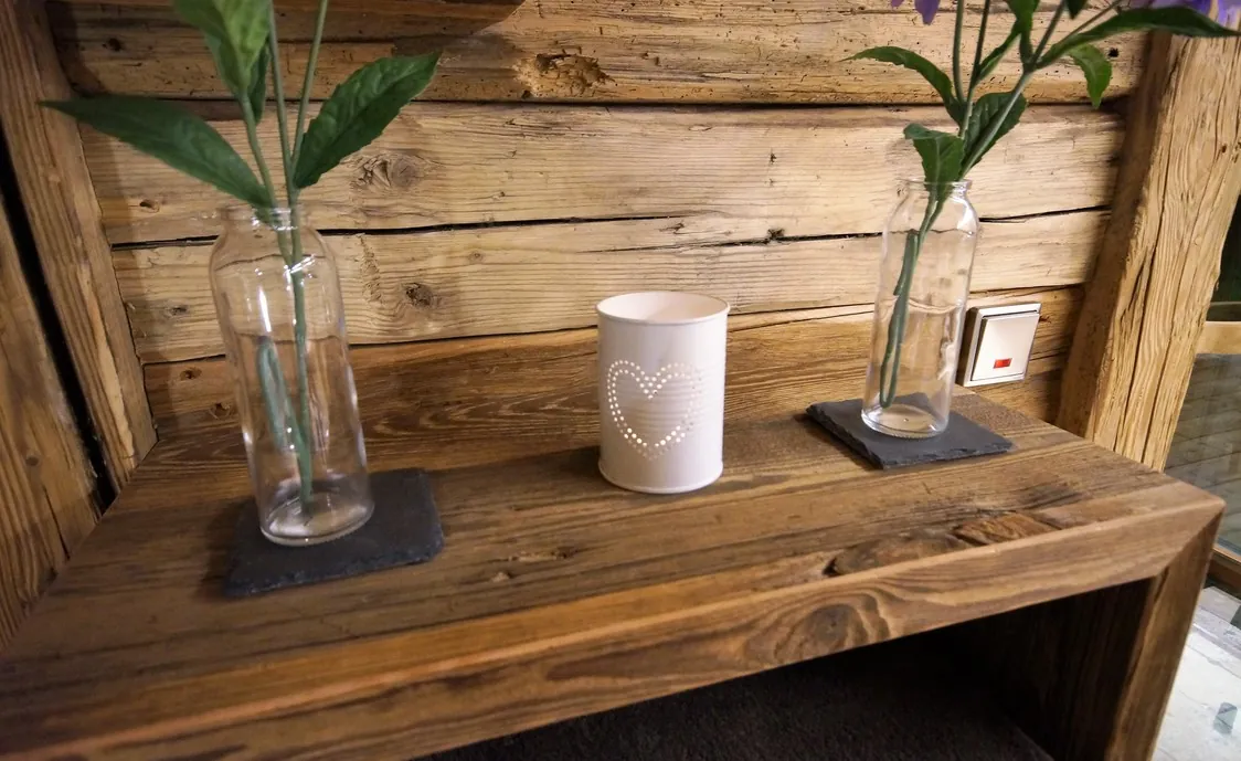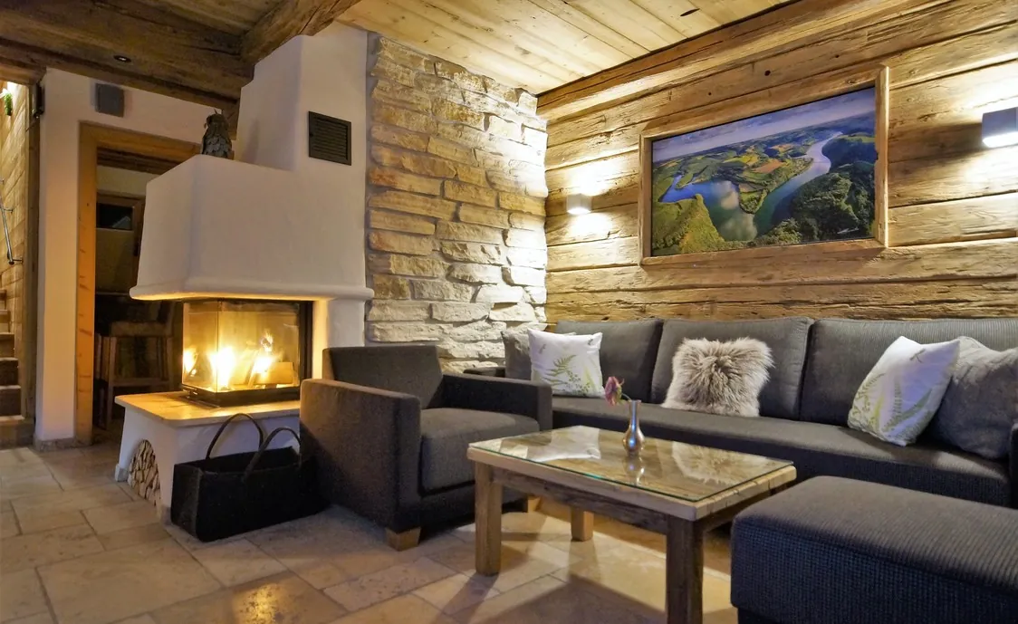 Die Ausstattung des Chalets besteht aus hochwertigen Materialien und alten Hölzern, die eine gemütliche Atmosphäre schaffen und Gäste sich somit sofort wohl fühlen.
