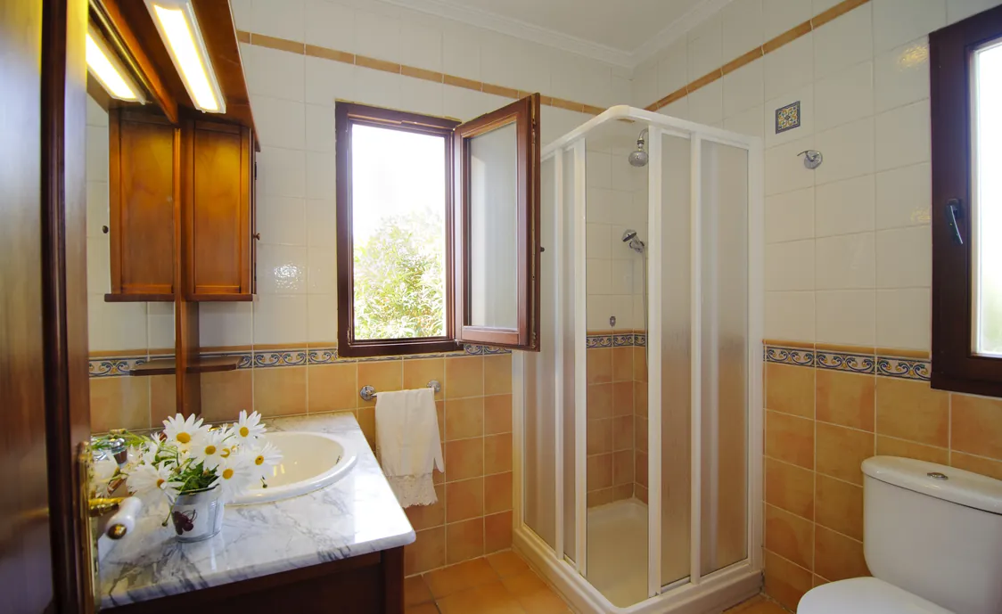 • Badezimmer 1: Dusche, Waschbecken, WC