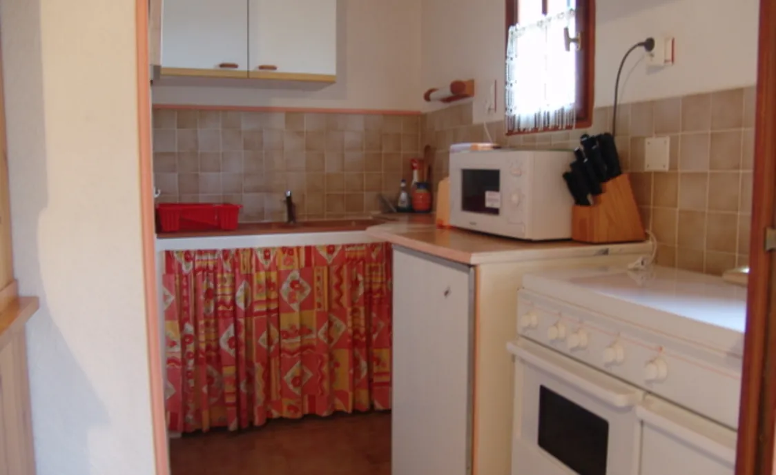 - Ausstattungen: Backofen, Bügeleisen, Geschirr und Besteck, Haartrockner, Kochplatten mit Gas, Küchenutensilien, Kühlschrank, Mikrowelle, Waschmaschine
