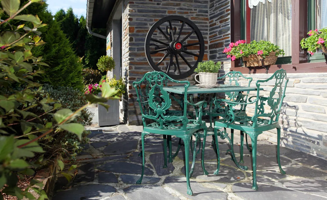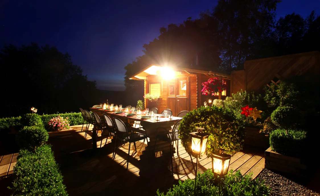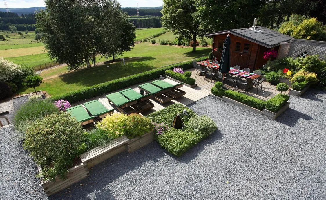 Der Außenbereich besteht aus einem Garten, einer Terrasse mit Gartenmöbeln, einem Petanquefeld, einer Außendusche und einem Trampolin. Das Highlight ist ein beheizbares Chalet mit Heißem Stein, wo Sie den Abend bei einem Essen in gemütlicher Atmosphäre ausklingen lassen können.