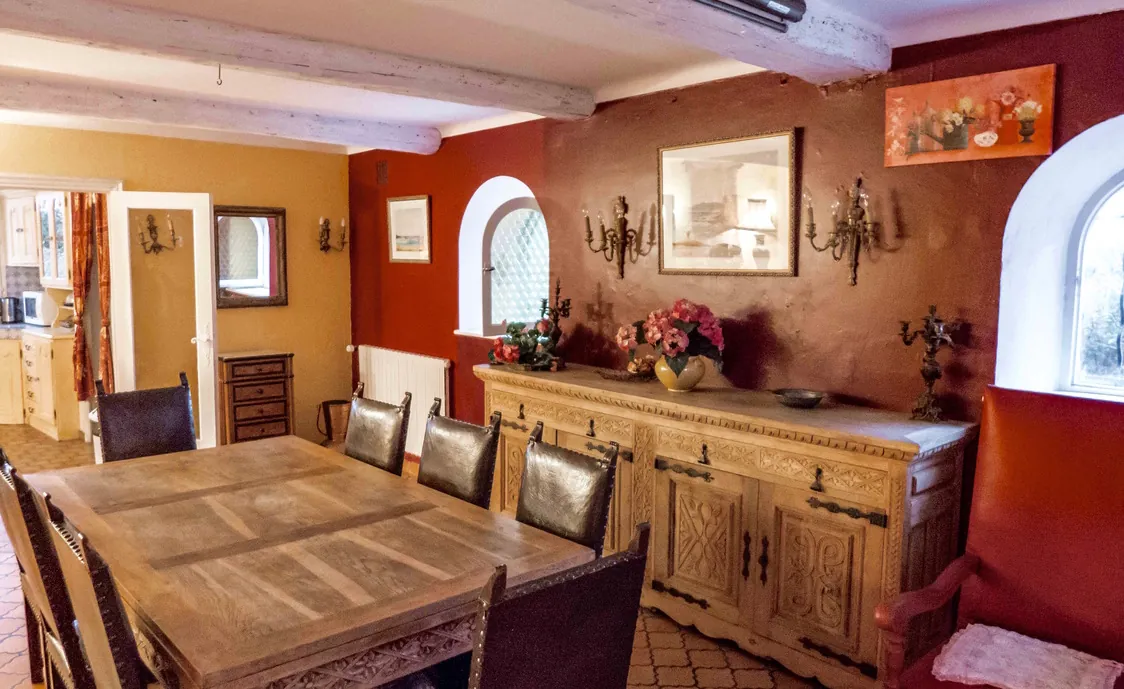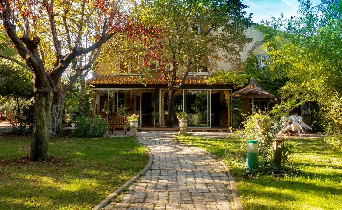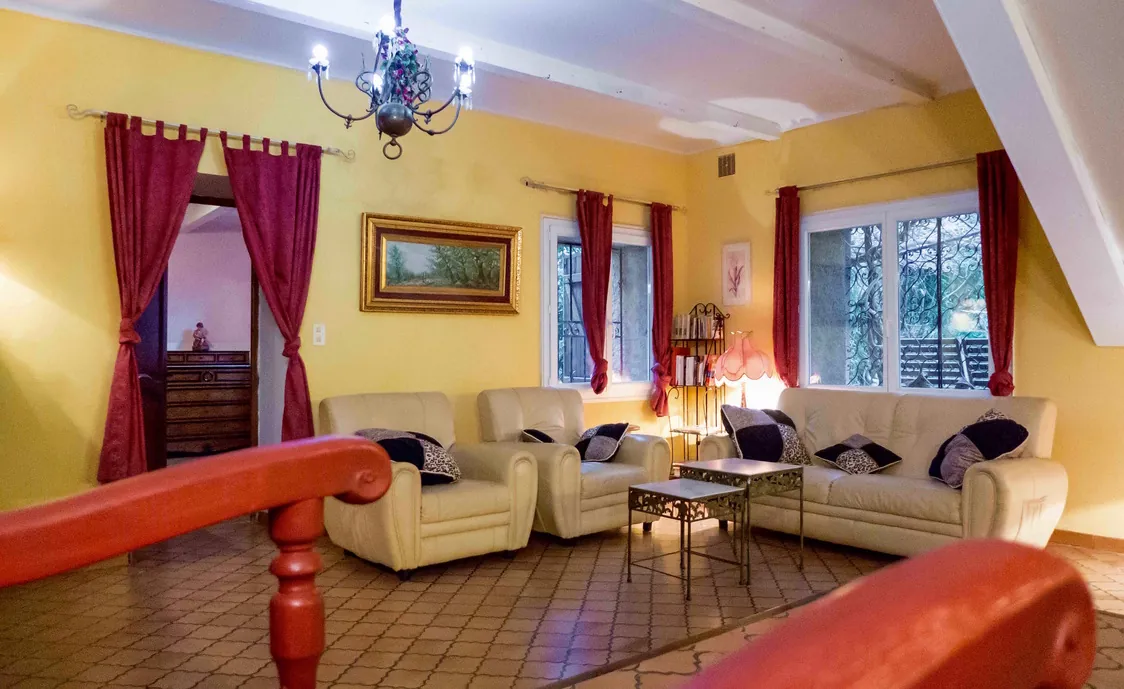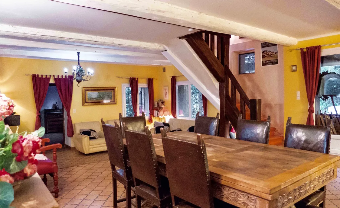 Es verfügt über 3 Etagen, erstreckt sich über 220m² und bietet somit ausreichend Platz für 12 Personen. Es ist angenehm in allen Jahreszeiten, da es in einer sehr ruhigen Umgebung befindet. Es verfügt über einen großen, grünen Garten von 2200m², mit Bäumen gepflanzt, die Schatten und Platz bieten, entweder zum Spielen oder um sich zu isolieren. Ein Wintergarten und eine große Terrasse mit Zugang zum Garten und Pool-Bereich. Der Pool ist groß, dreieckig (9 * 8 * 7 Meter) und ist ganzjährig benutzbar.
