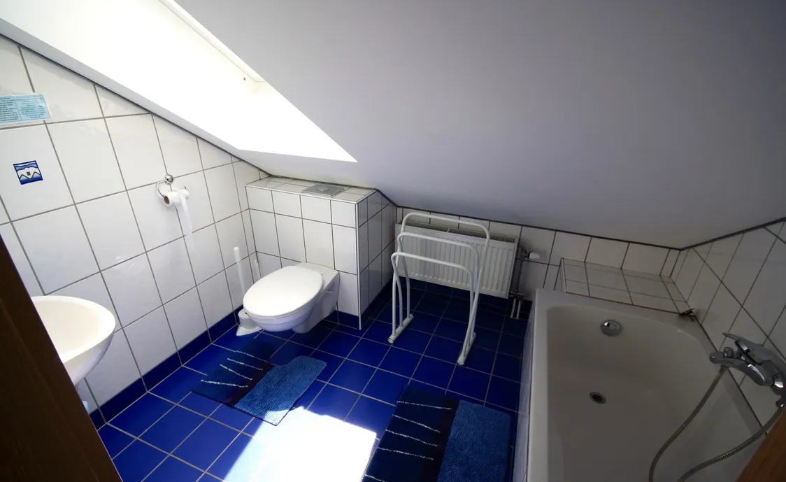 2 Badezimmer mit jeweils einer Badewanne und einer Toilette sind ebenfalls dort zur Verfügung.
