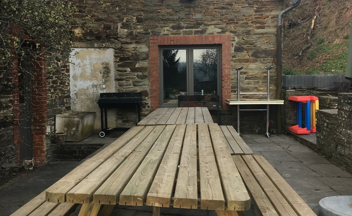 Im Außenbereich finden Sie die Terrasse auf der Sie die frische Luft der belgischen Ardennen genießen können und im Sommer zusammen grillen können.