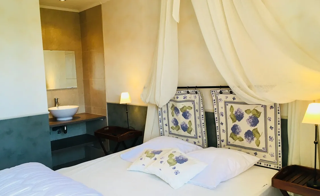• 2 Schlafzimmer mit Doppelbett und Badezimmer mit Dusche und WC
