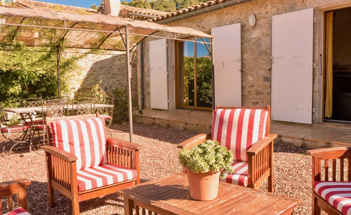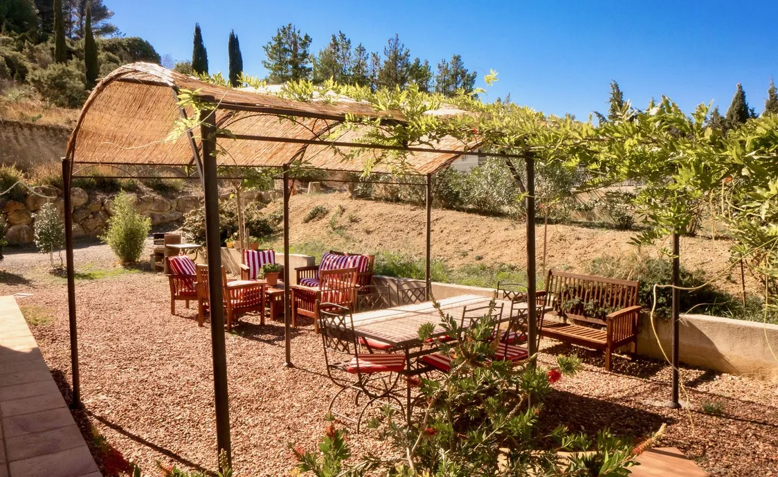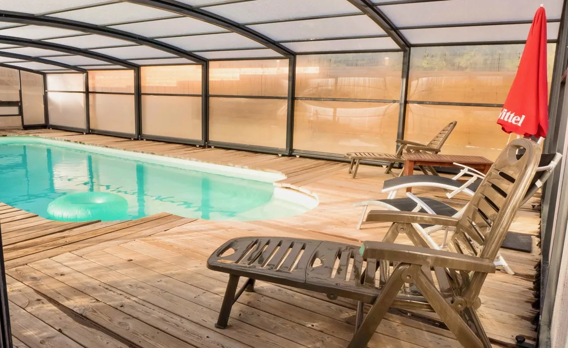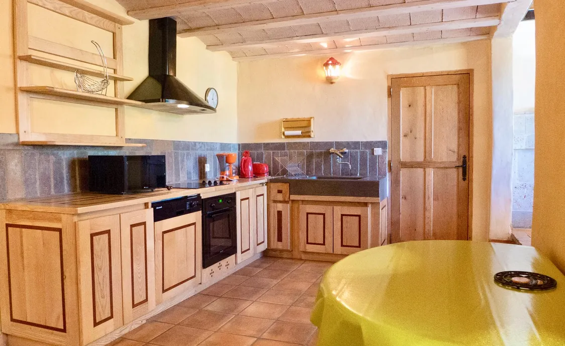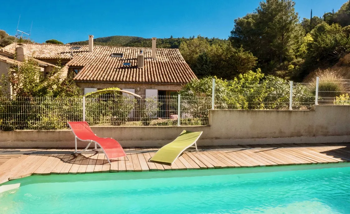 Das Haus wurde komplett renoviert und mit Geschmack eingerichtet. Die Einrichtung ist edel und die Farben sind warm, und der Stein und Holz im Inneren des Hauses zeigen einen sehr rustikalen Geschmack. Die private Terrasse grenzt an einem grünen Bereich von 2000m², mit einem eingezäunten privaten Pool (8 * 4m). Wenn die Temperaturen fallen, wird der Pool automatisch abgedeckt.
