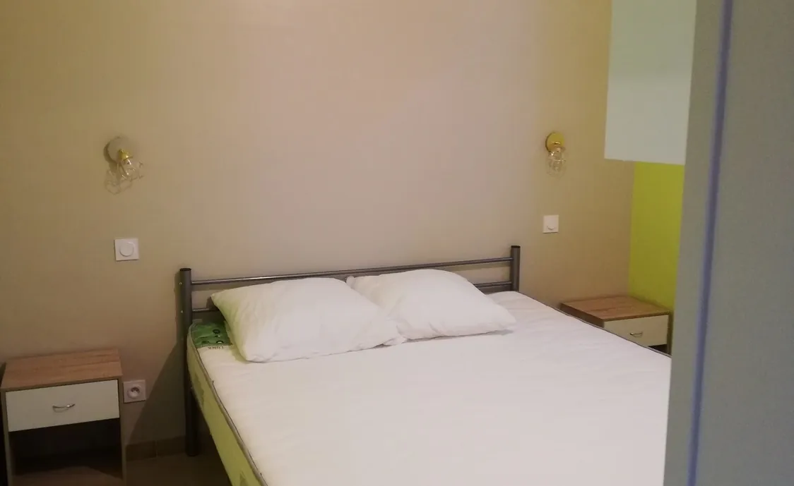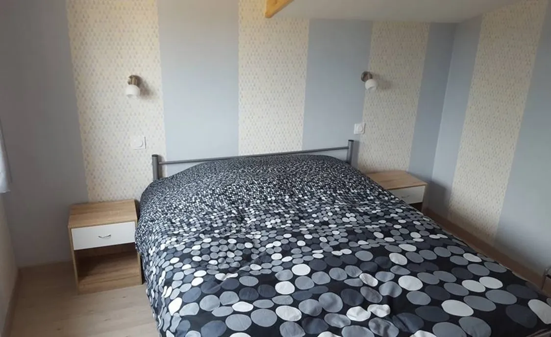 Das Ferienhaus verfügt über 3 Schlafzimmer, 2 der Schlafzimmer sind mit einem Doppelbett von 160 cm ausgestattet und das 3. Schlafzimmer verfügt über ein Etagenbett und 1 Ausziehbett, dass sich in ein Bett von 160 cm verwandelt.