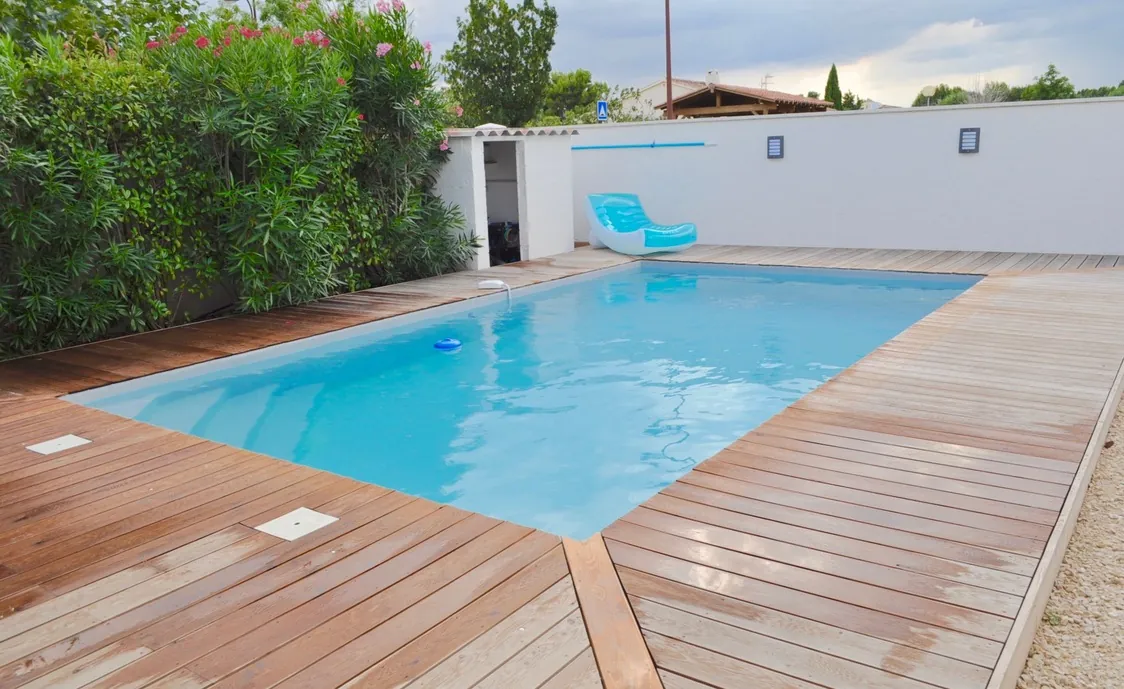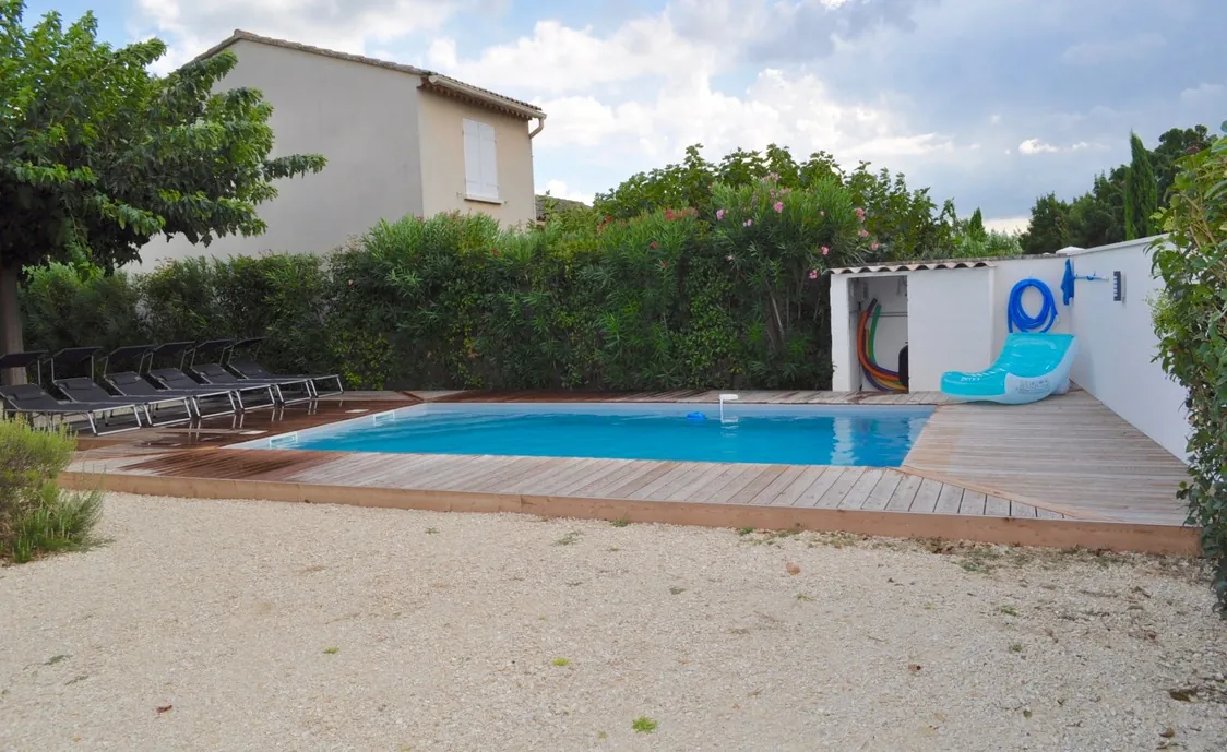Im Außenbereich finden Sie das private Schwimmbad von 7 m x 4 m und 8 Liegestühle, auf denen Sie sich an heißen Sommertagen entspannen können.