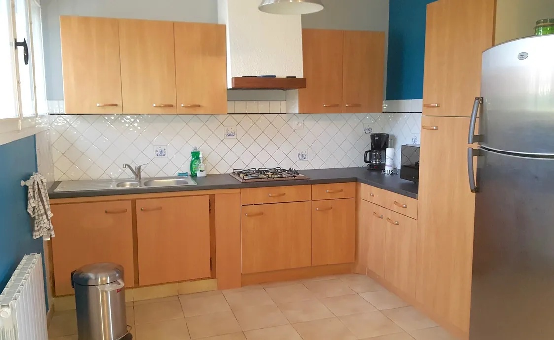 Es gibt eine ausgestattete Küche mit Kühlschrank + Gefrierfach, einem 4 Flammen-Gasherd, einer Mikrowelle, einer Kaffeemaschine, einem Toaster, einer Saftpresse und jeglichen Küchenutensilien, die man für 8 Personen benötigt.