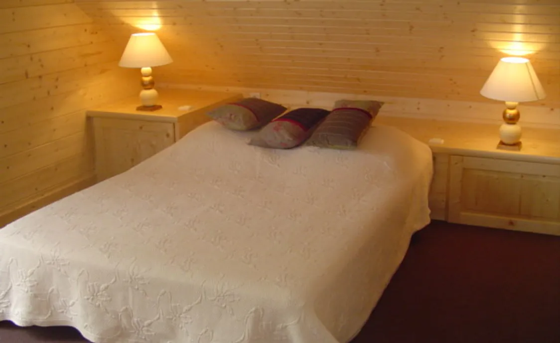 - Ein Schlafzimmer mit Doppelbett, Dusche und WC