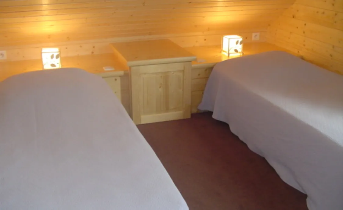 - Zwei Schlafzimmer mit zwei Einzelbetten, ein Bad und eine Toilette