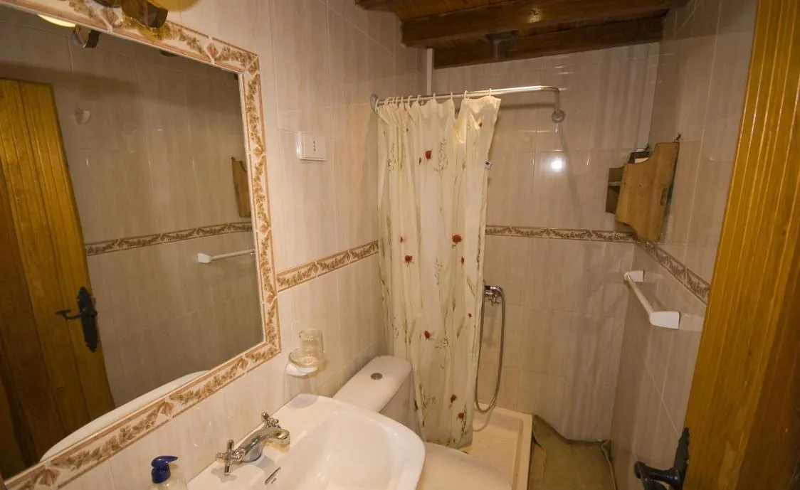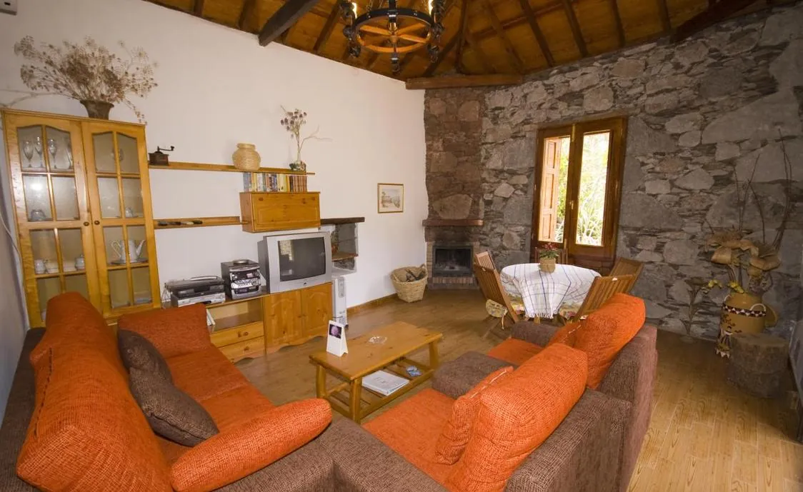Dachkonstruktion und Steinwände grenzen zwei nur über den Hofraum miteinander verbundene Gebäudeteile voneinander ab. Einer beherbergt ein Doppelschlafzimmer, Bad und Wohnzimmer mit Kamin, Stereoanlage, Fernseher und Videorecorder, der andere ein Doppelschlafzimmer, ein Bad und die Küche.