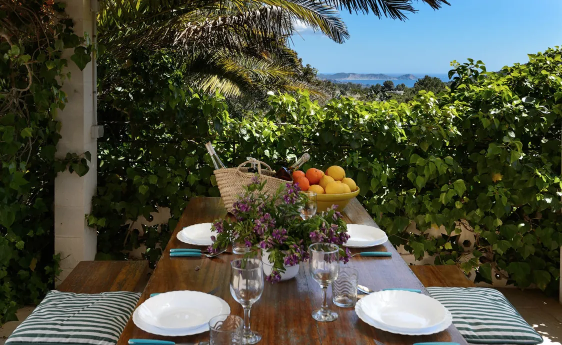 • Ein traditionelles Ibiza Haus, in einem der schönsten Orte der Insel: Cala D'Hort. Ideal für Familien mit Kindern.