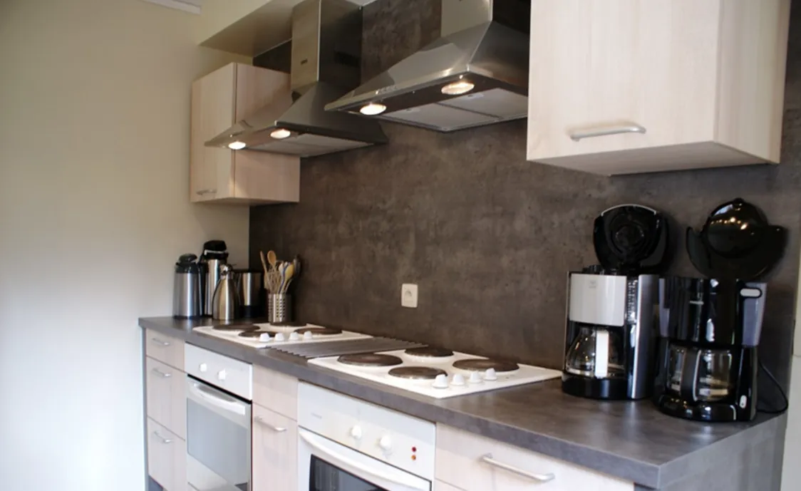- Ausstattungen: Backofen, Elektrische Kochplatten, Gefrierschrank, Geschirrspüler, Kaffeemaschine, Kühlschrank, Mikrowelle, Waschmaschine