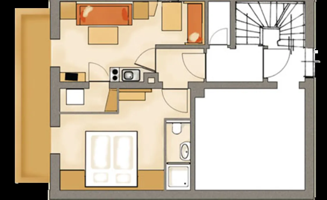 - Ausstattungen: Backofen, Bügeleisen, Elektrische Kochplatten, Geschirr und Besteck, Geschirrspüler, Haartrockner, Kaffeemaschine, Kochplatten, Küchenutensilien, Kühlschrank, Mikrowelle, Toaster
