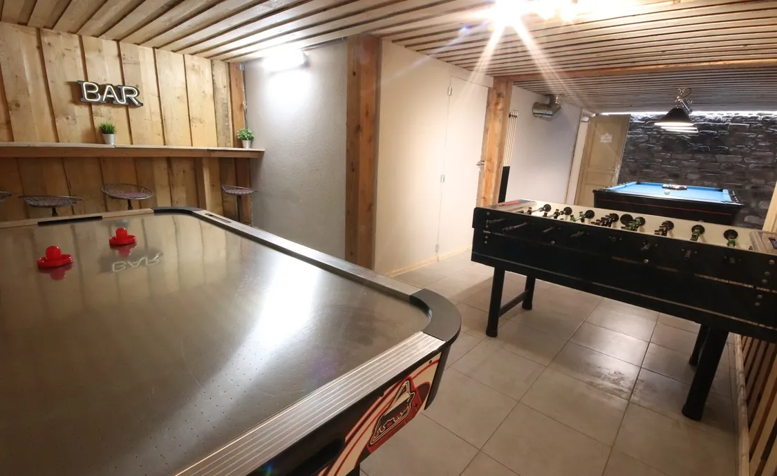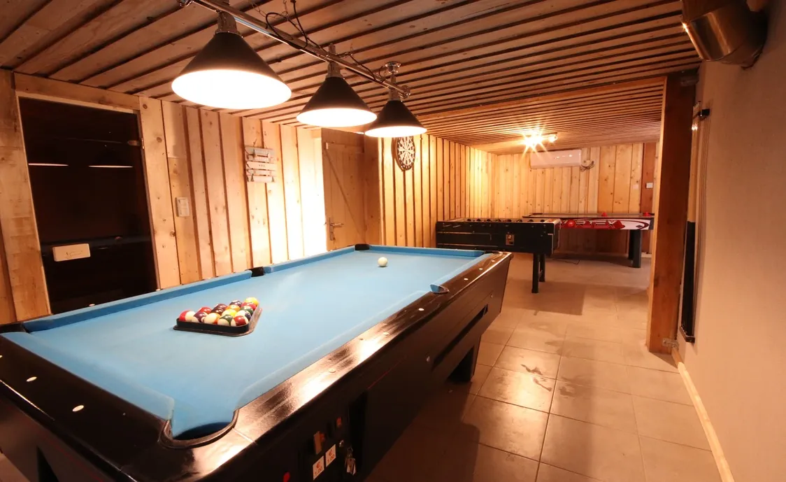 Im Wellnessbereich gibt es eine Sauna und für die Kleinen und Großen einen Billard, Kicker und Air-Hockey Tisch.