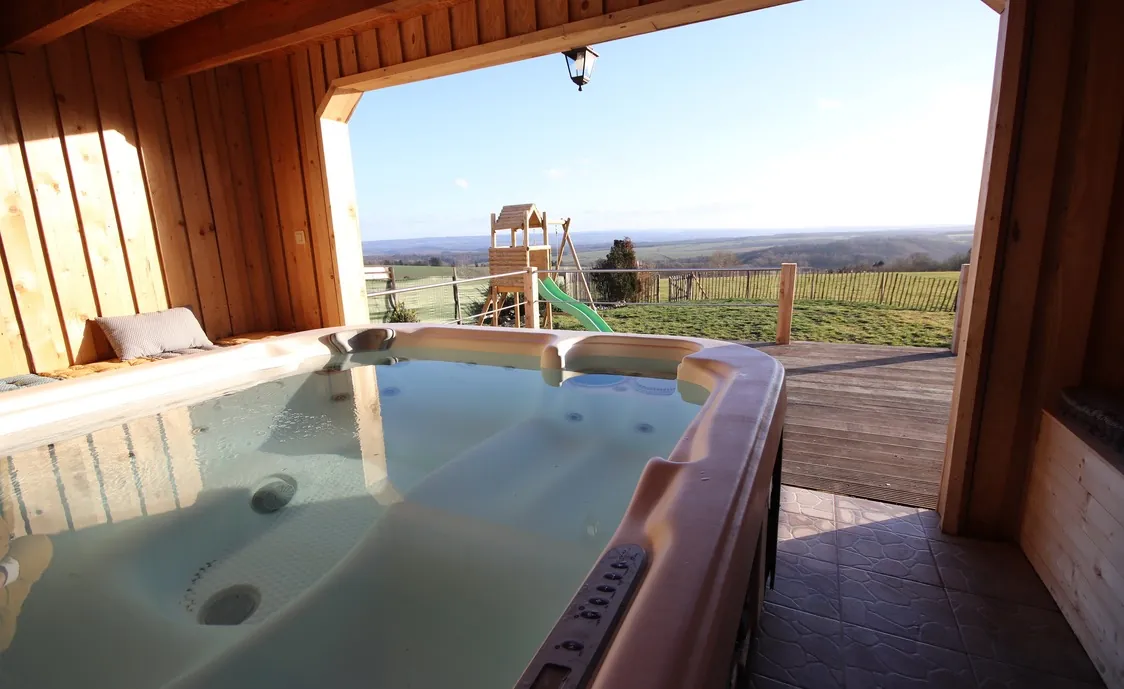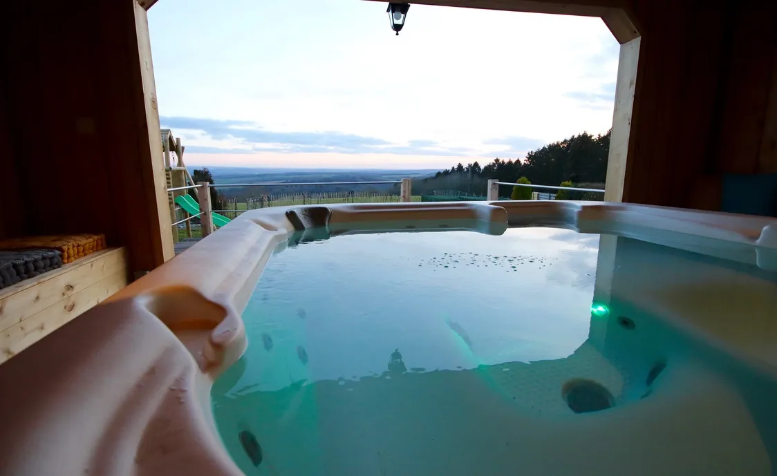 Im Außenbereich finden Sie den Whirlpool mit wunderschöner Aussicht auf die umliegende Landschaft und für die Kleinen gibt es einen Spielbereich mit Rutsche, Schaukel und Sandkasten.