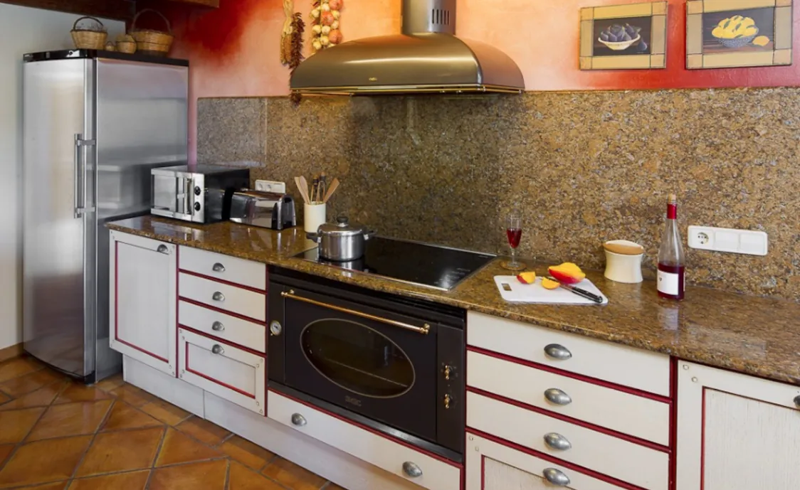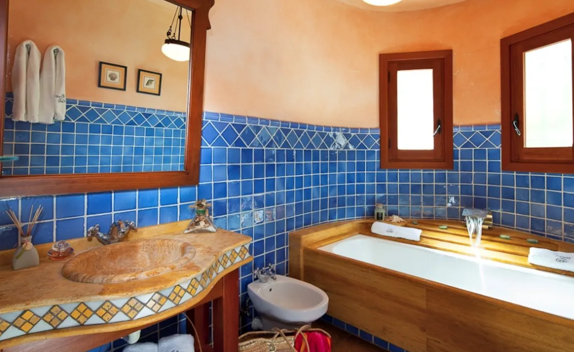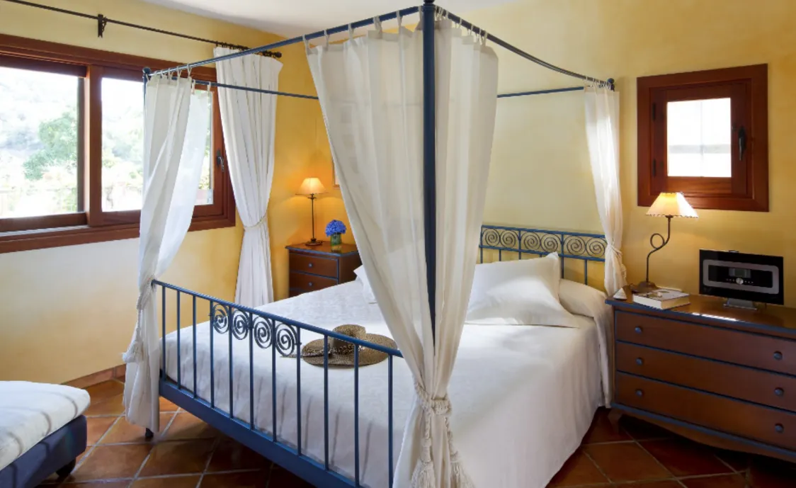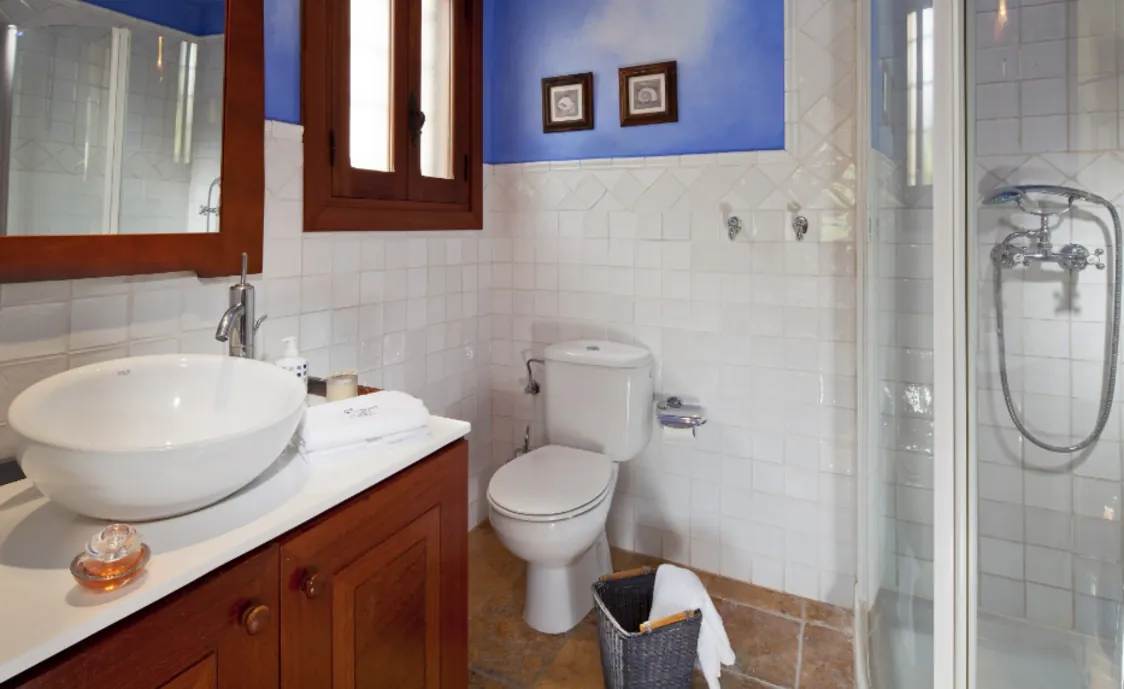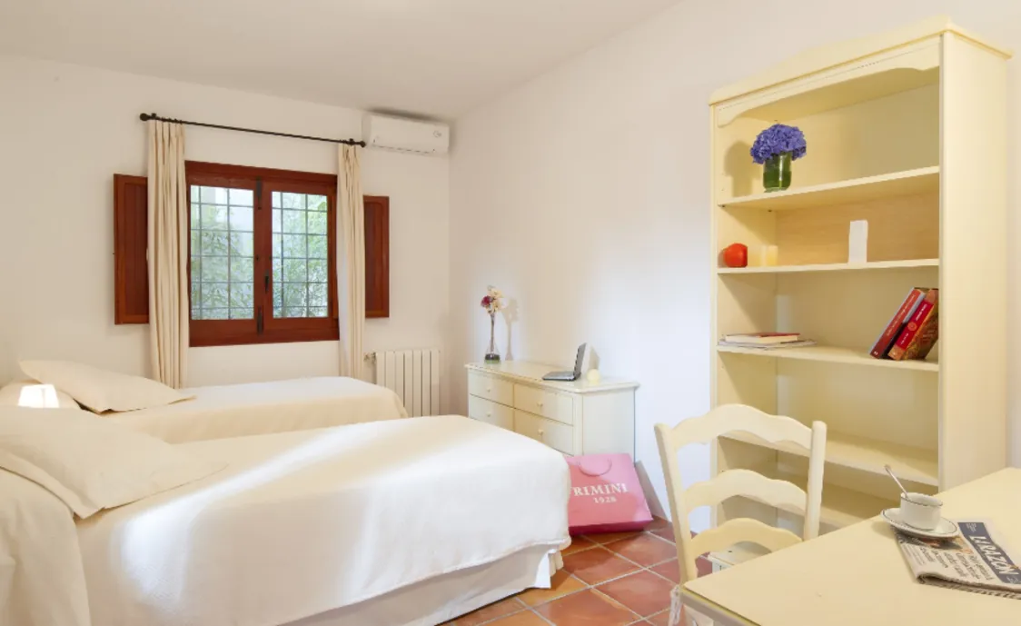 Das Hauptgebäude besteht aus 2 Etagen. Im Untergeschoss finden Sie die komplett ausgestattete Küche mit Esszimmer, das Wohnzimmer mit Fernseher, Computer, Internet und Klimaanlage. Außerdem gibt es hier das Hauptschlafzimmer mit einem Doppelbett und Bad en suite, und 2 weitere Schlafzimmer mit jeweils 2 Einzelbetten, die sich ein Badezimmer teilen.