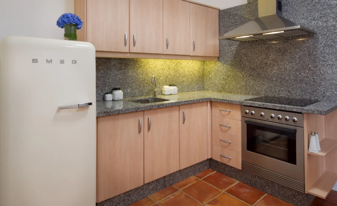 Getrennt vom Haus gibt es noch ein kleines Nebengebäude mit offener Küche, Wohnzimmer, Badezimmer und ein Schlafzimmer mit 2 Einzelbetten.