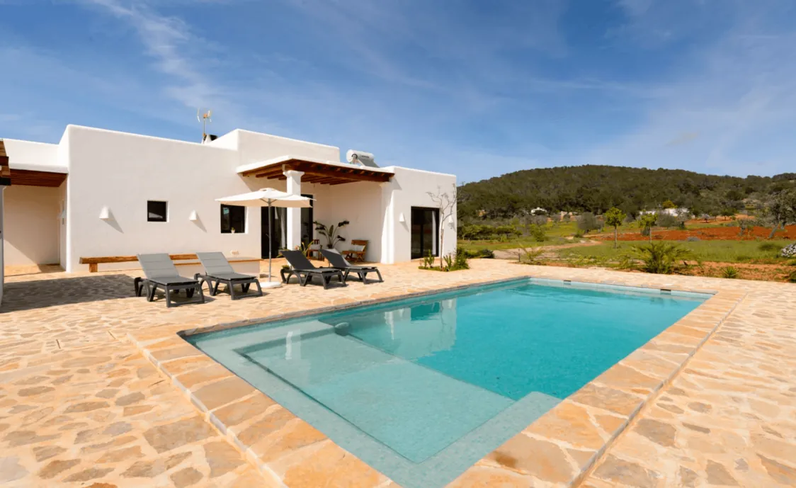 Dieses neu gebaute Ferienhaus befindet sich mitten in der schönen Landschaft Ibizas. Nur 2 km von San Miguel entfernt, wo Sie die ersten Geschäfte und Restaurants finden werden.