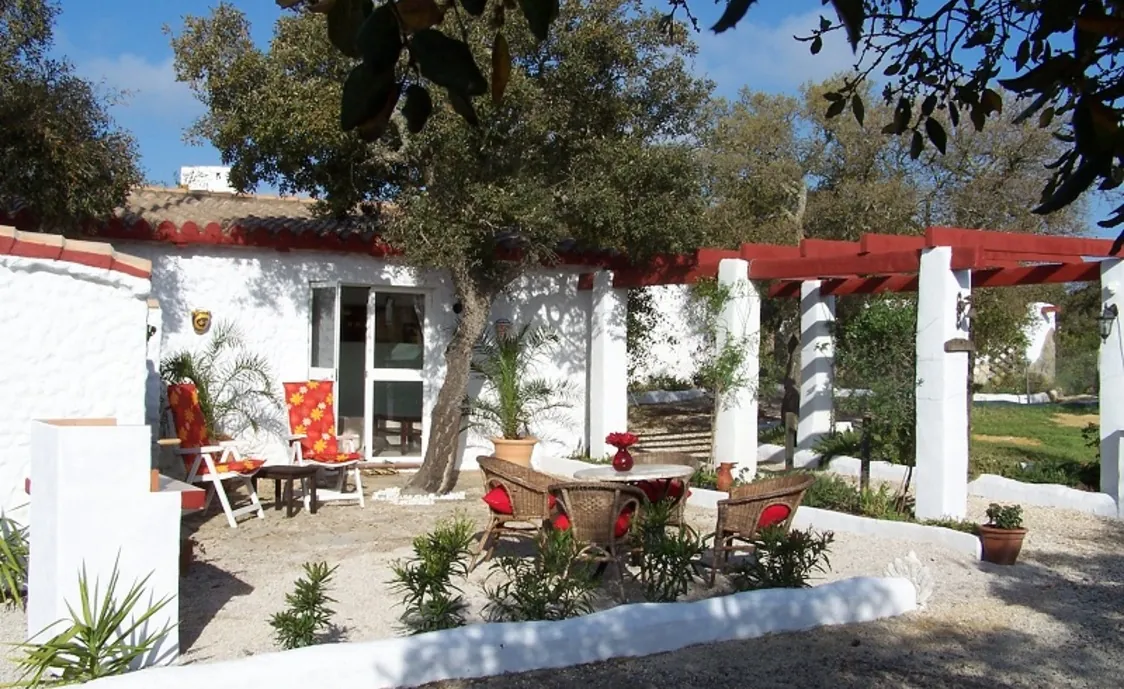 Freistehende Wohnung auf dem Lande zwischen Conil de la Frontera (10 Min. Autofahrt) und Chiclana (15 Min. Autofahrt) inmitten eines Korkeichenwaldes. Auf 15 Fahrminuten finden Sie die schönsten weißen Sandstrände Spaniens. Die Casita mit privatem Pool liegt auf einem Grundstück von fast 4000m² am Rande eines Naturschutzgebietes. Etwa die Hälfte des Grundstücks mit privatem Eingang steht den Mietern zur Verfügung. Die Besitzer (Holländer) wohnen nebenan und sind also direkt ansprechbar. Mitten in der Natur und von den fast 50 Korkeichen geschützt vor der Sonne. Energie kommt von Sonne und Wind. Hier entlädt sich alle Stress und finden Sie sich wieder.