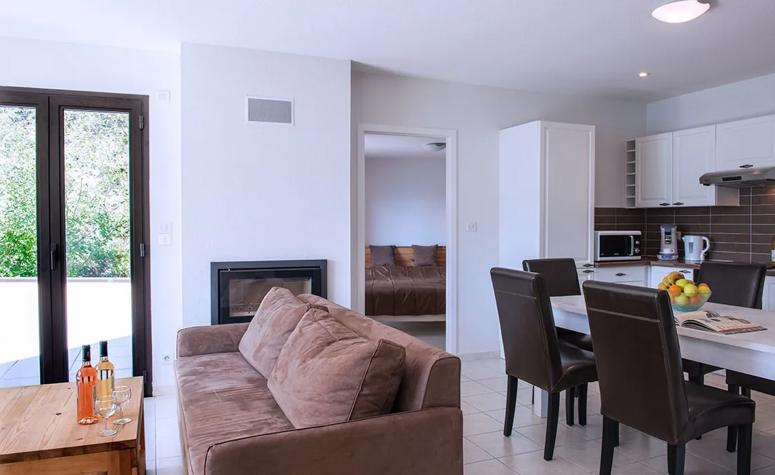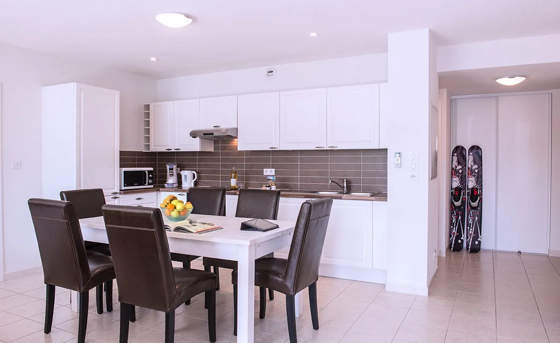 Sie wohnen in luxuriösen Apartments von 100 m², die mit einem Wohnzimmer mit Sitzecke, mit Schlafsofa für 2 Personen und einem TV (nur französische Sender), einem Essbereich und einer voll ausgestatteten Küche ausgestattet sind. Für mehr Komfort stehen in jedem Apartment 2 Bäder zur Verfügung, das erste mit Badewanne und das zweite mit Dusche.