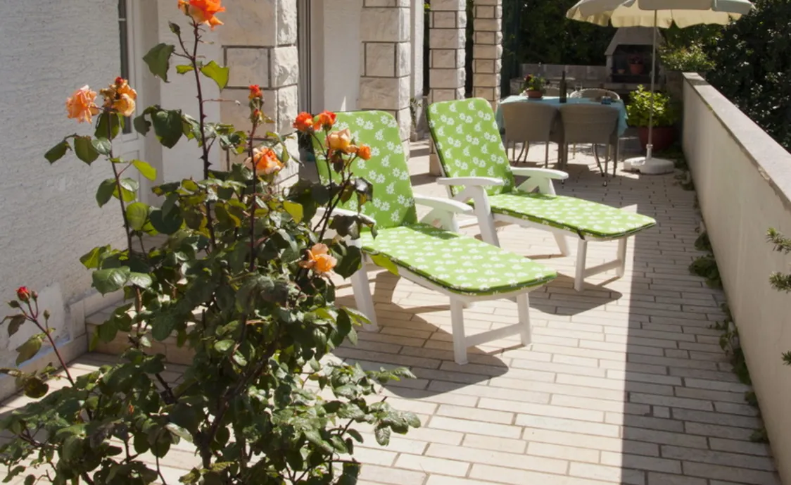 - Outdoor: Gartenmöbel, Grill, Liegestühle, Terrasse, Überdachte Terrasse, Umzäunter Garten