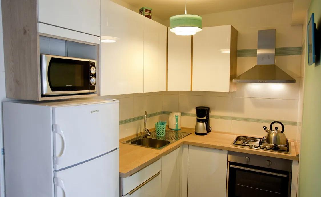 - Ausstattungen: Backofen, Bügeleisen, Elektrische Kochplatten, Gefrierschrank, Geschirr und Besteck, Haartrockner, Kaffeemaschine, Kochplatten, Kochplatten mit Gas, Küchenutensilien, Kühlschrank, Mikrowelle, Senseo-Kaffeemaschine, Teekessel, Toaster