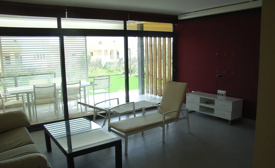 Das Apartment hat -zusätzlich zu den gemeinschaftlich genutzten Flächen mit drei Swimmingpools (für Kleinkinder, Erwachsene und Fortgeschrittene)- einen privaten Garten von 200 Quadratmetern.