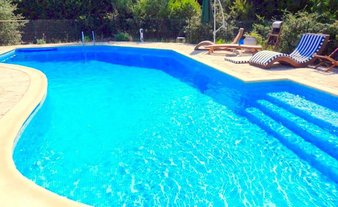 Der Außenbereich bietet Ihnen 4000 m2 zum Erholen. Dies können Sie im privaten Pool, oder auf der Terrasse tun. Der Pool ist von einem Zaun umgeben, der durch ein Gitter verschlossen werden kann und somit sehr gut für Familien mit Kindern geeignet ist.