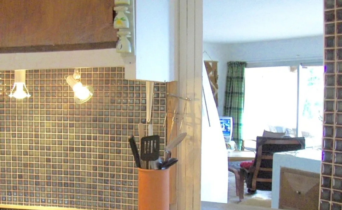 Die Küche und das Wohnzimmer befinden sich in der Mitte des Hauses. Die Schlafzimmer befinden sich an den Seiten der Villa.