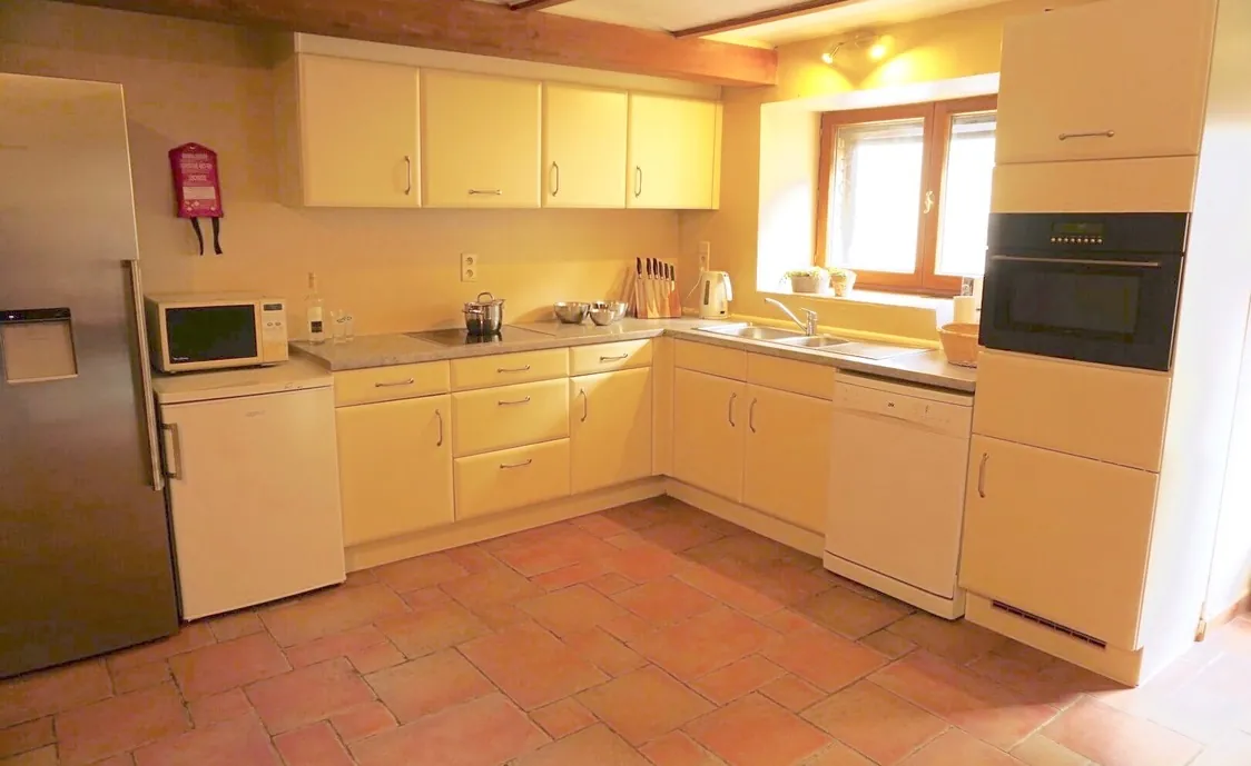 - Ausstattungen: Backofen, Elektrische Kochplatten, Fruchtpresse, Gefrierschrank, Geschirr und Besteck, Geschirrspüler, Kaffeemaschine, Kochplatten, Küchenutensilien, Kühlschrank, Mikrowelle, Teekessel