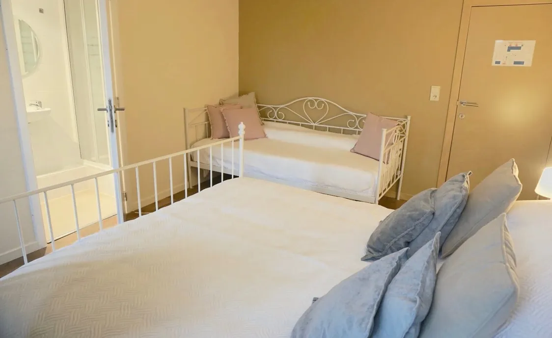 2 Schlafzimmer verfügen über jeweils ein Doppelbett, das andere Zimmer ist mit 2 Doppelbetten und 2 Einzelbetten ausgestattet.