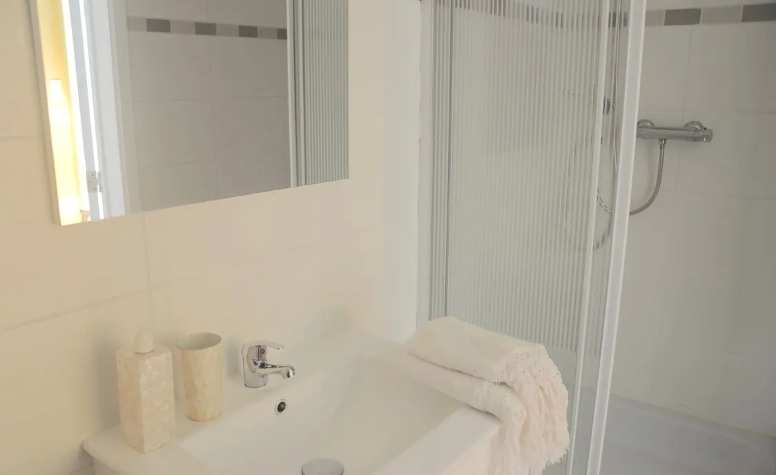 Im ersten Stock befinden sich 4 Schlafzimmer mit jeweils einem privaten Badezimmer mit Wc. 2 Schlafzimmer verfügen über ein Doppelbett und die anderen 2 Schlafzimmer sind mit jeweils einem Doppelbett und einem Einzelbett ausgestattet.