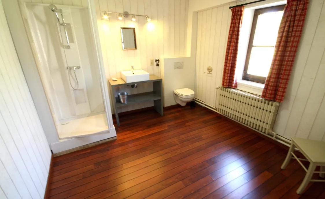 Das Erdgeschoss besteht aus einem großen Wohnzimmer mit offenem Feuer, das dem Wohnraum eine freundliche Atmosphäre verleiht. Ein großer Speisesaal erwartet Sie mit einem großen Tisch, um die komplette Gruppe zu versammeln. Die Küche ist modern und gut ausgestattet.
