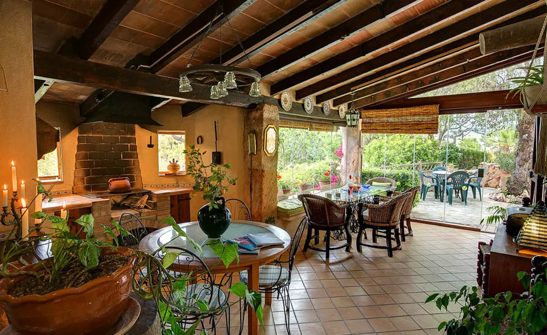 - Überdachte Terrasse mit klappbarer Glaswand und i-pod-Dockingstation, Grill, und original Brotbackofen