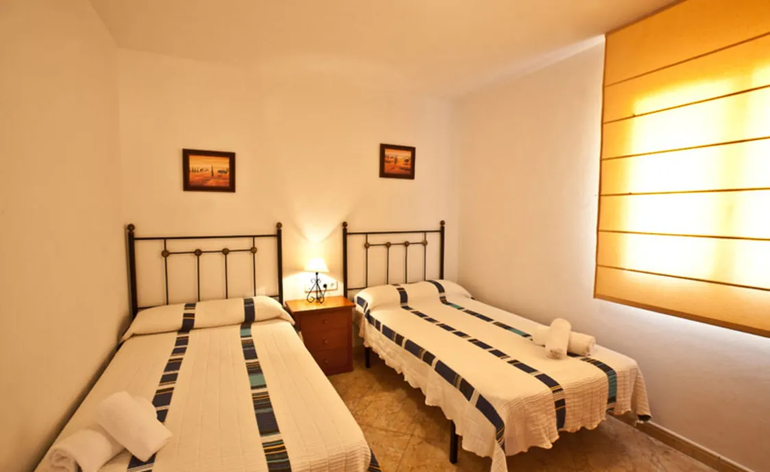 - 2 Schlafzimmer, eines mit Doppelbett, eines mit zwei Einzelbetten.