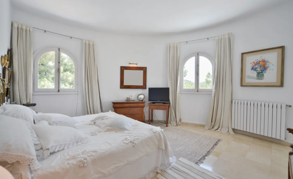 - Master Schlafzimmer mit En-Suite Bad, TV und Terrasse mit Aussicht aufs Meer