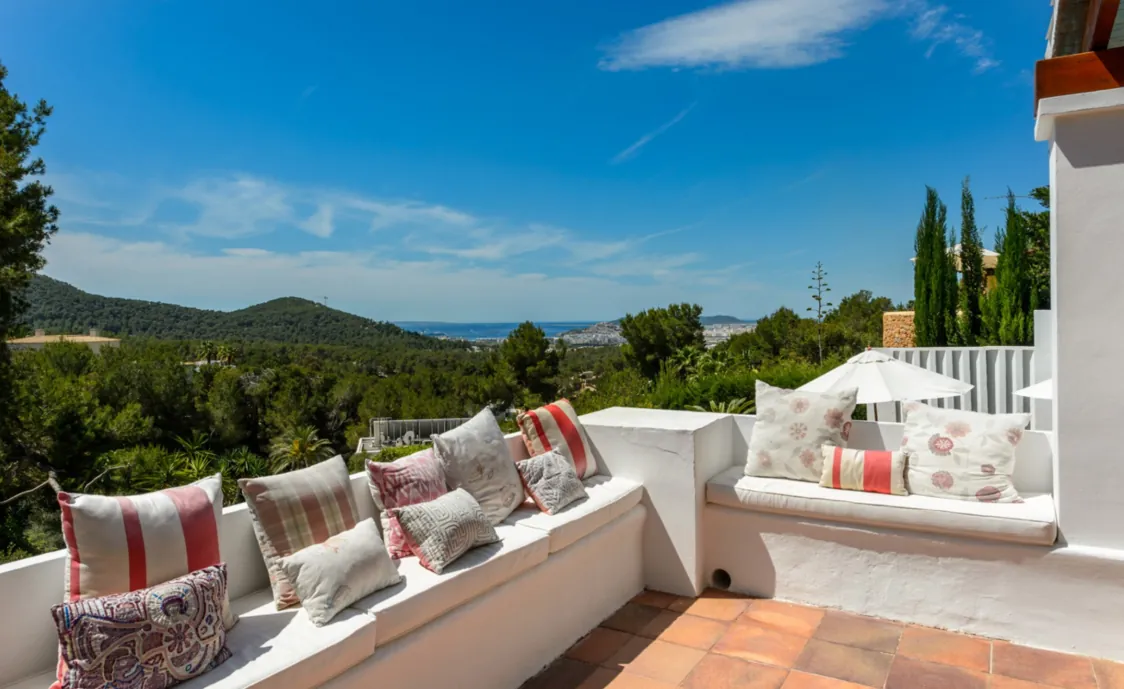 Diese luxuriöse Villa befindet sich in Can Furnet, einer schönen Stadt auf Ibiza und verfügt über eine fantastische Aussicht auf die Stadt Ibiza und das Meer.