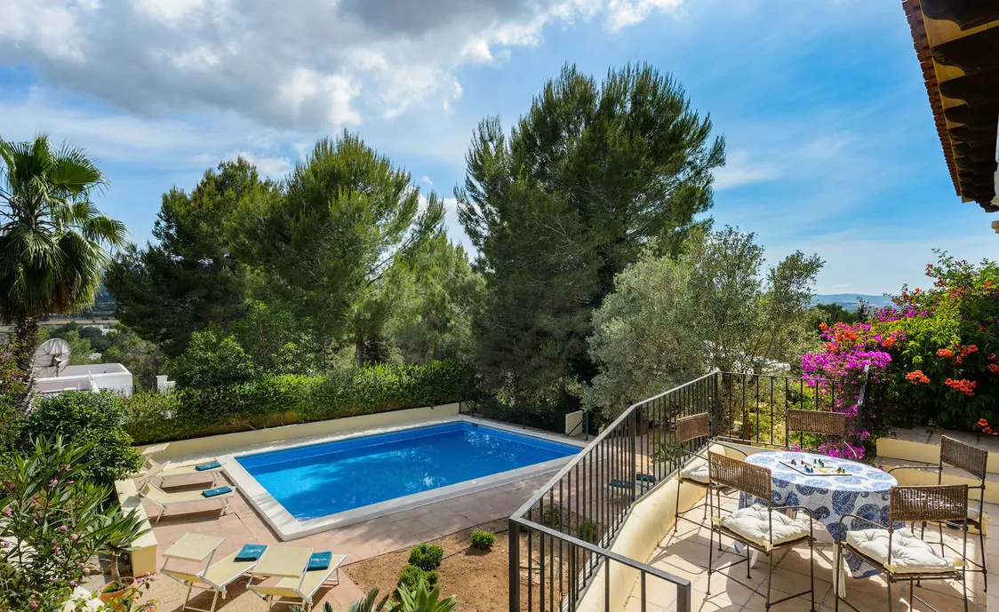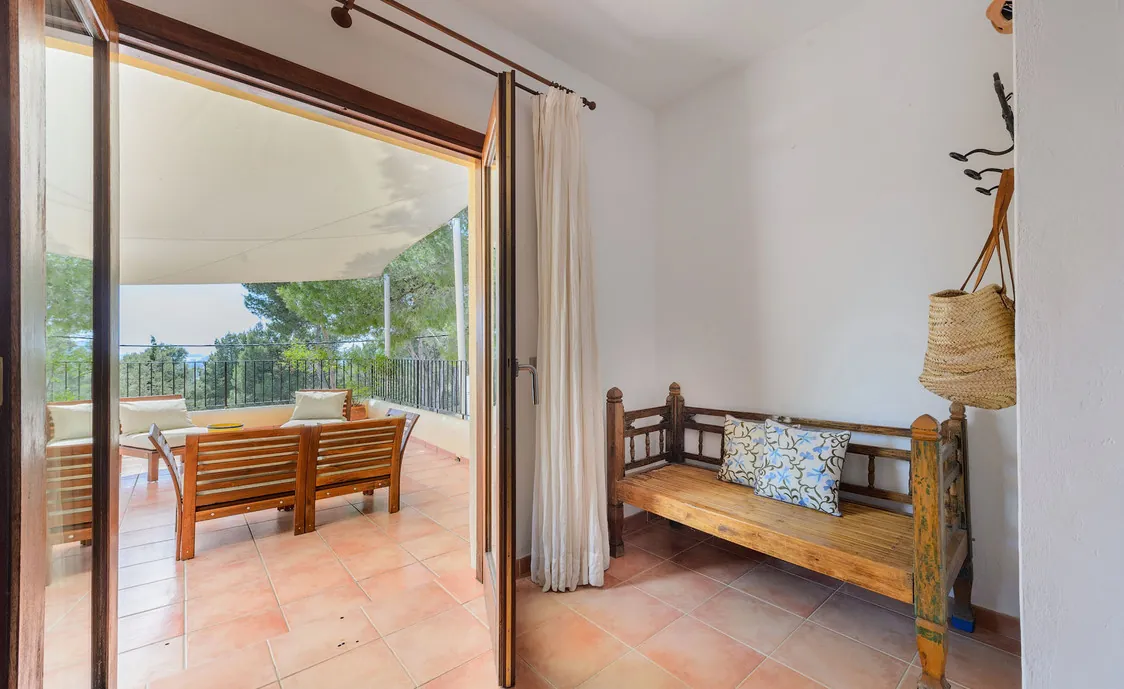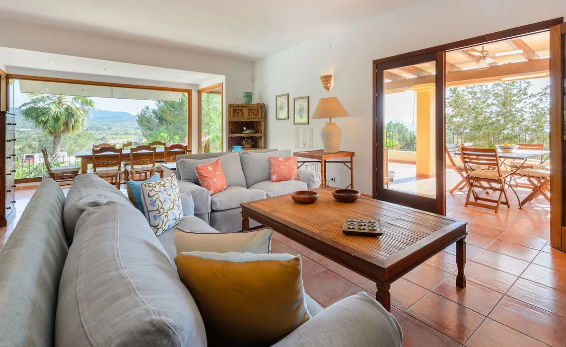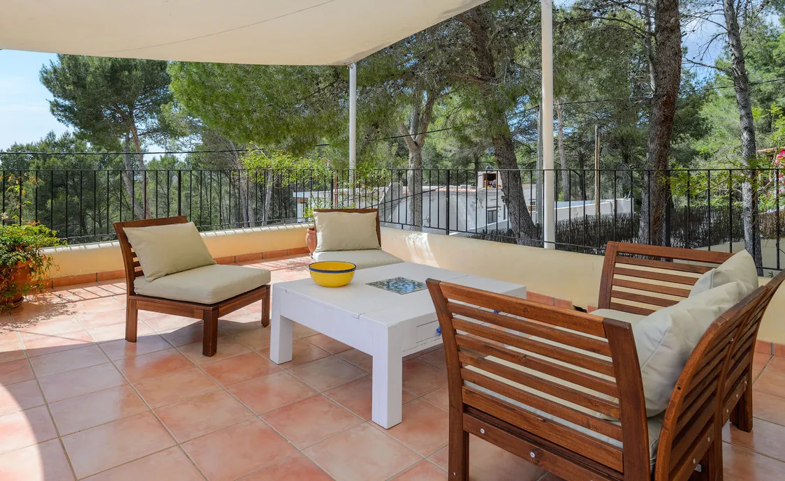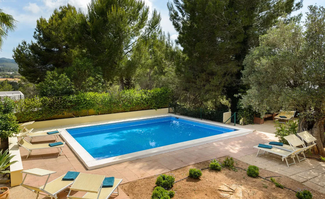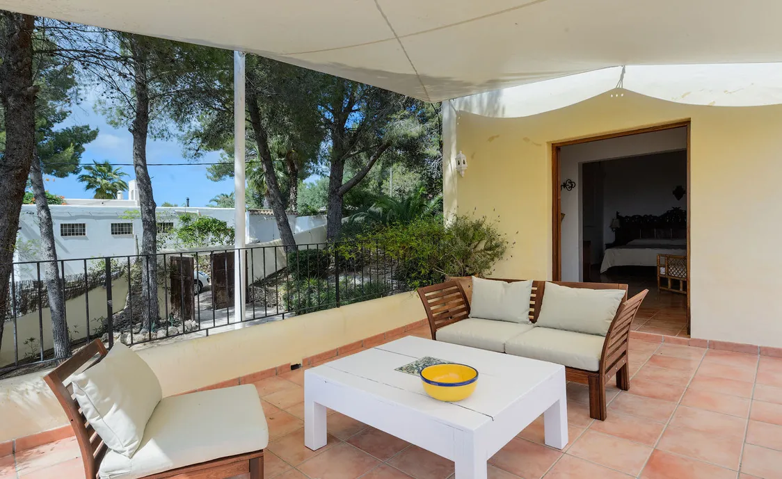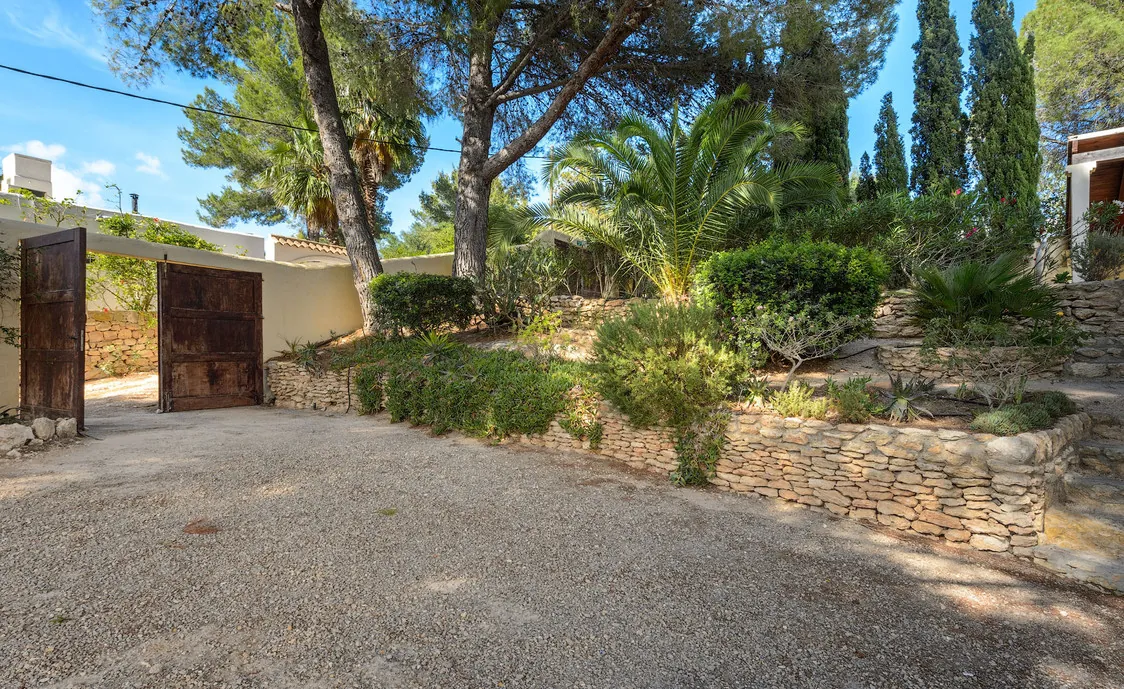 In einem Wohngebiet gelegen, 4,5km von Stadt "San Antonio" und 5,6 von "San Rafael". 5 km bis zum nächsten Supermarkt (LIDL). 13km bis zur Stadt Ibiza. Der nächste Sandstrand "Cala Salada" liegt in 8km Entfernung.