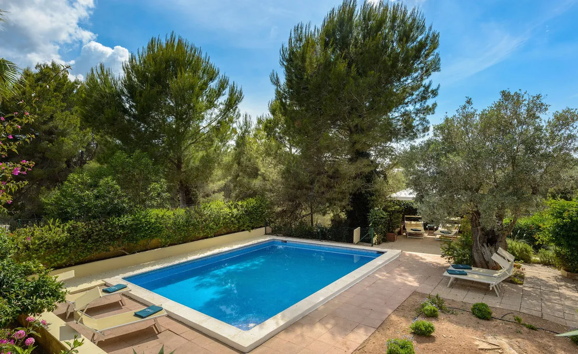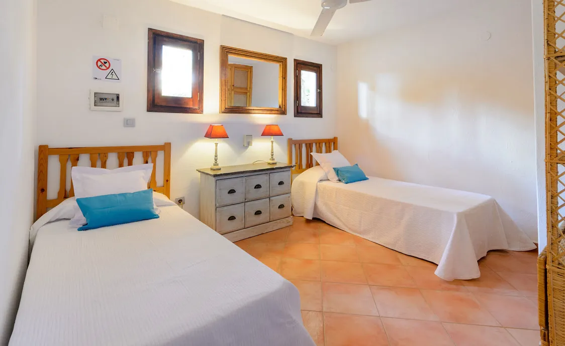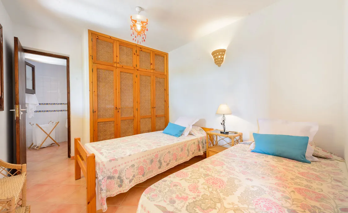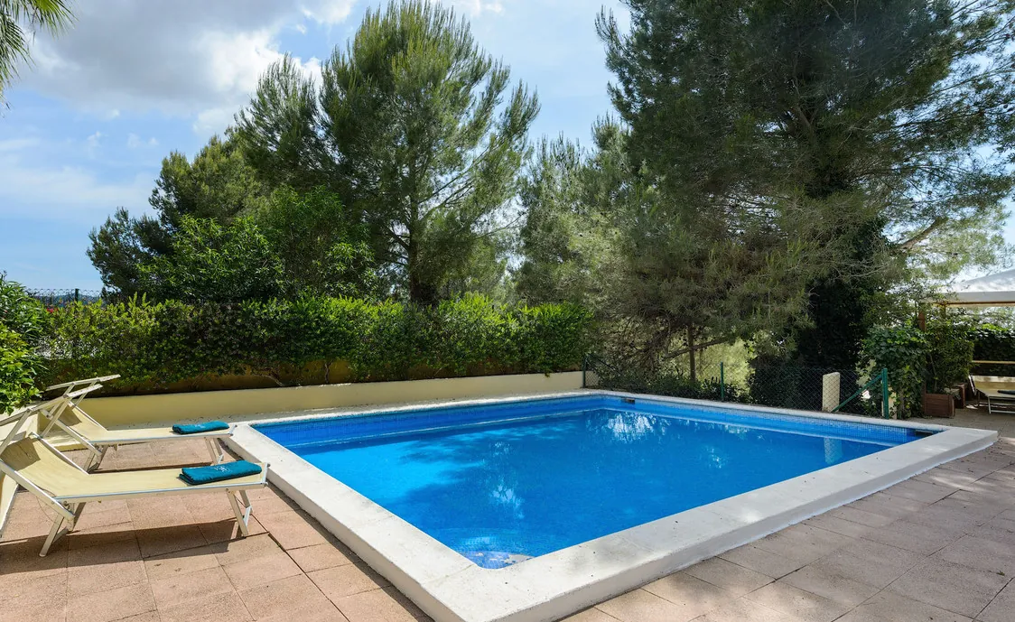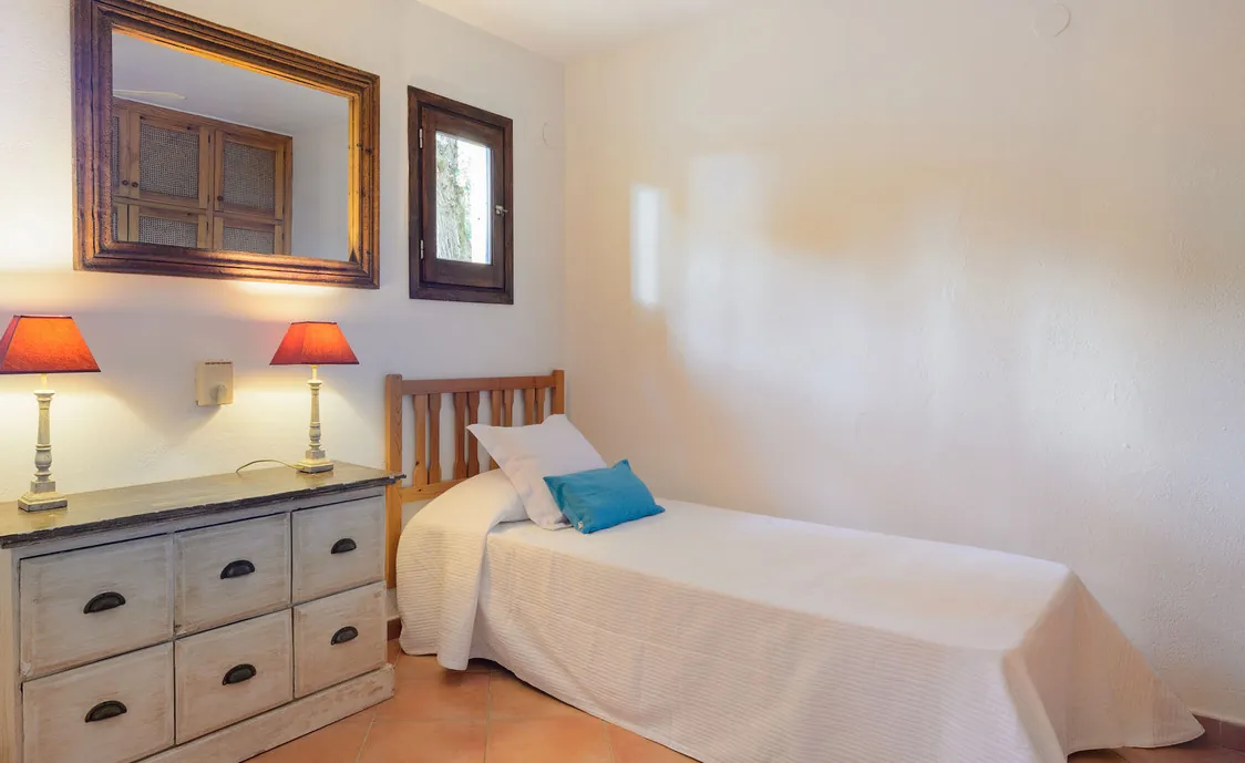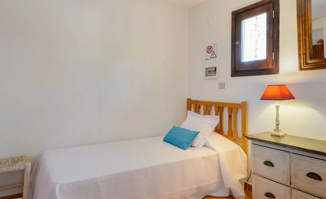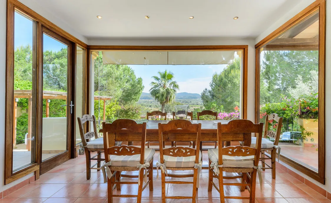 In einem Wohngebiet gelegen, 4,5km von Stadt "San Antonio" und 5,6 von "San Rafael". 5 km bis zum nächsten Supermarkt (LIDL). 13km bis zur Stadt Ibiza. Der nächste Sandstrand "Cala Salada" liegt in 8km Entfernung.