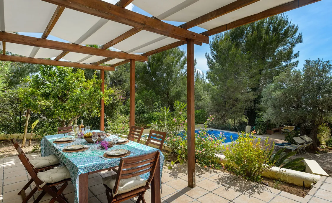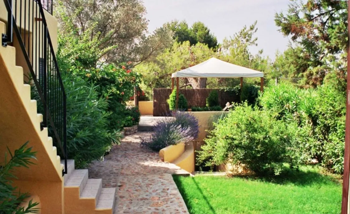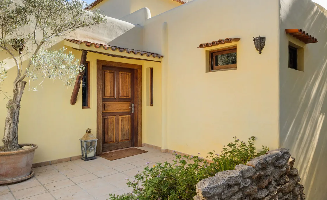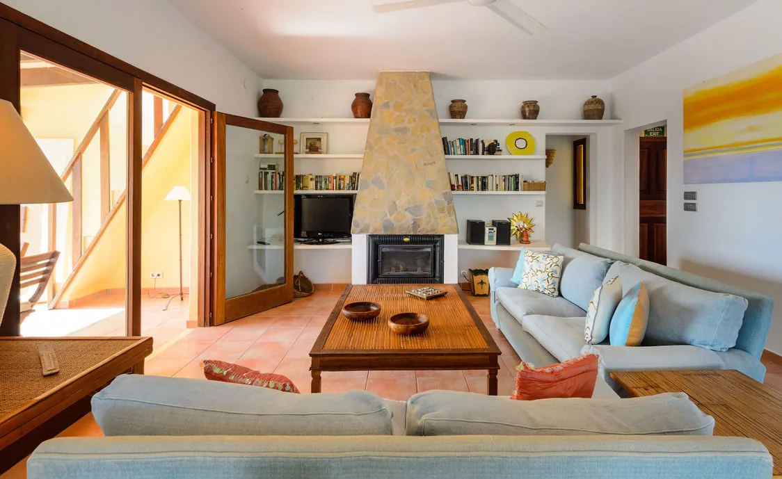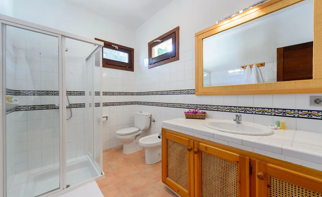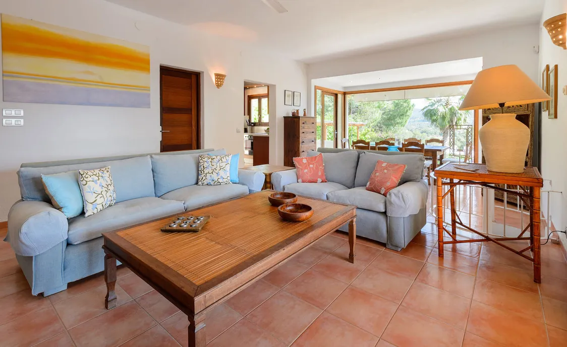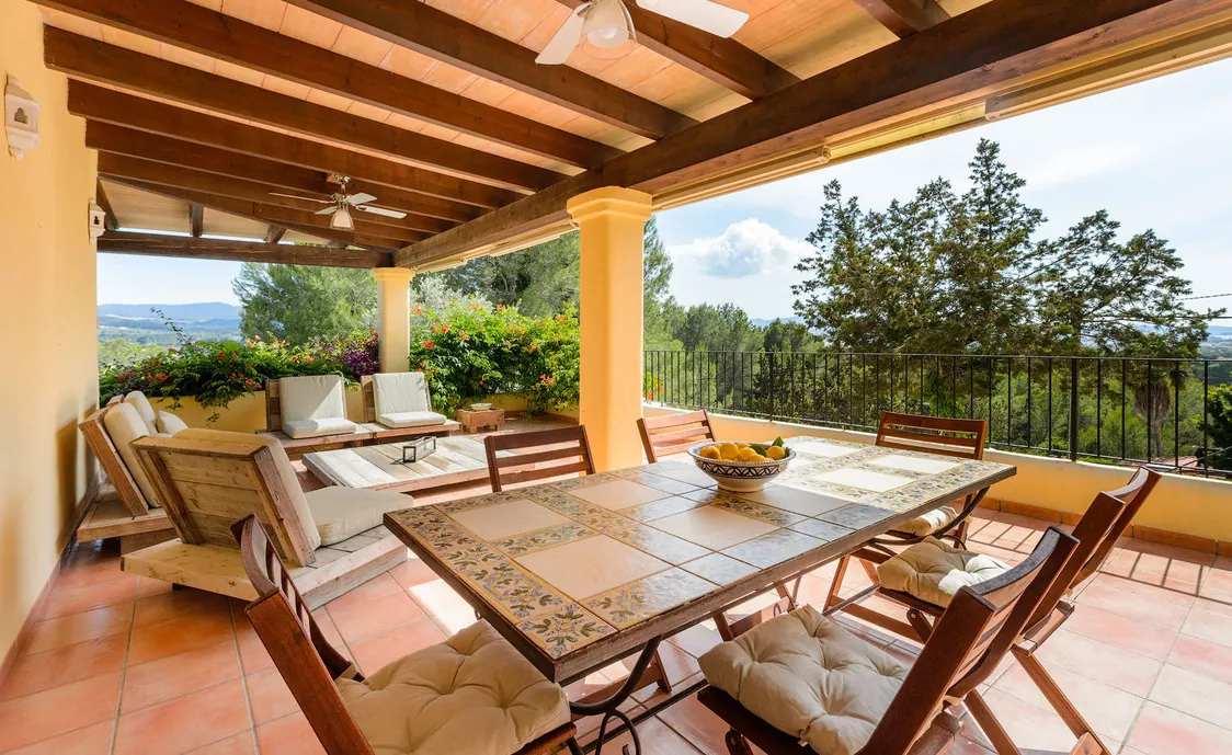 In einem Wohngebiet gelegen, 4,5km von Stadt "San Antonio" und 5,6 von "San Rafael". 5 km bis zum nächsten Supermarkt (LIDL). 13km bis zur Stadt Ibiza. Der nächste Sandstrand "Cala Salada" liegt in 8km Entfernung.