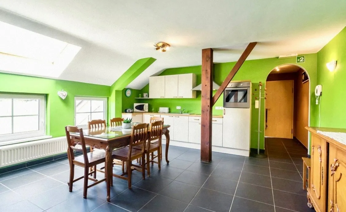 Das große Ferienhaus besteht insgesamt aus 4 Appartements, sodass sich jeder in seine Wohnung zurückziehen kann. Im großen gemeinschaftlichen Aufenthaltsraum können Sie gemeinsame Stunden verbringen.
