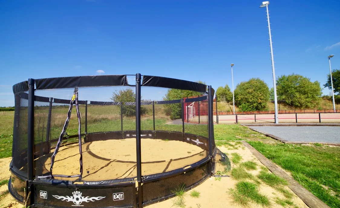Der Außenbereich ist ideal für Kinder. Es gibt einen großen Garten, ein Trampolin, eine Tischtennisplaate, einen Tennisplatz, der verfügbar ist vom 01/04 – 30/09/2018, einen Volleyballplatz, Badminton, Basketballplatz und einen Minifussballplatz.