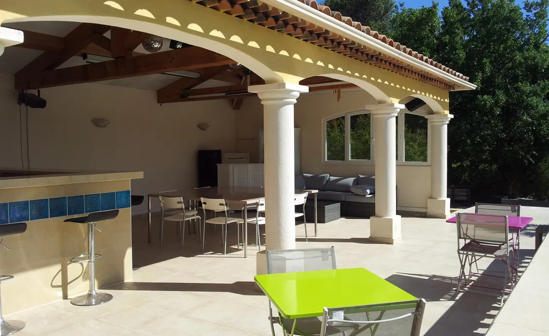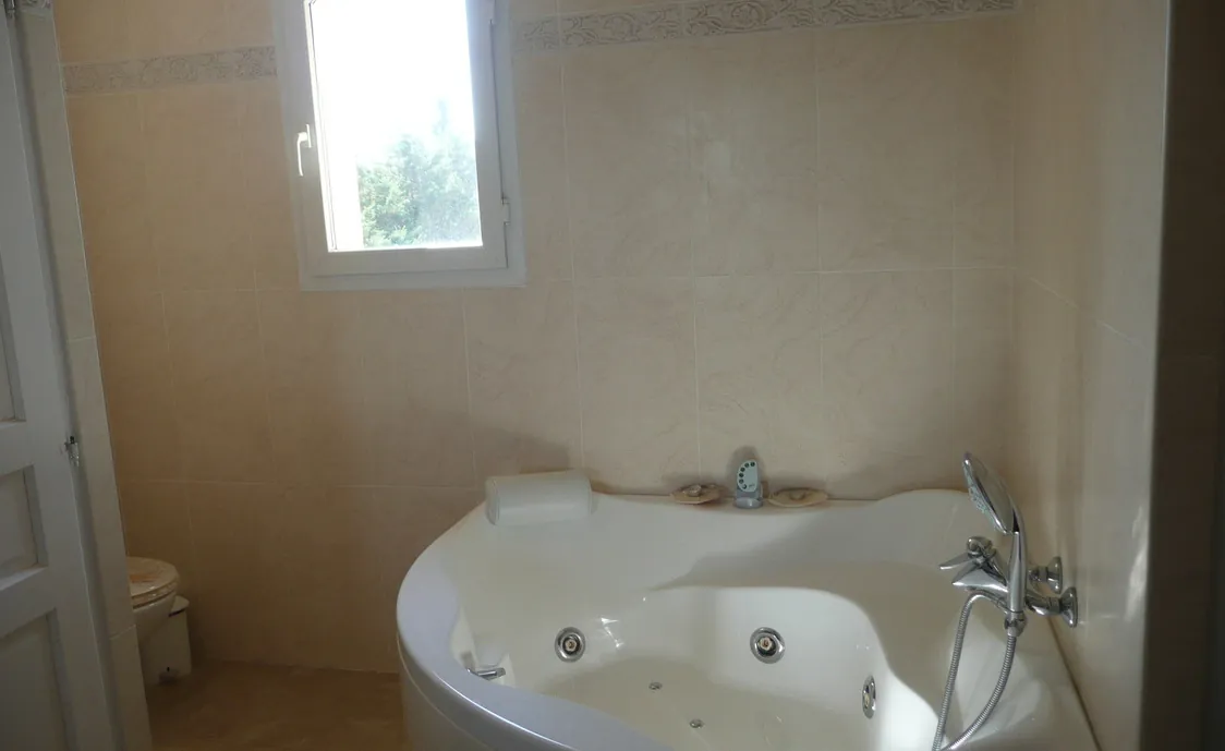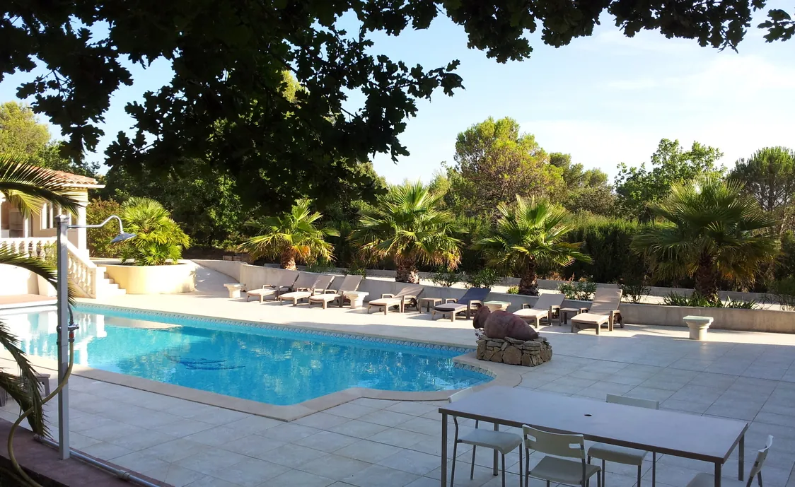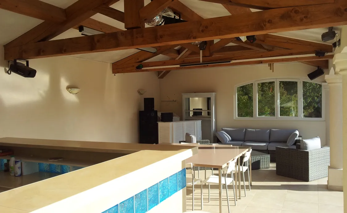 Außerhalb der Villa befindet sich ein Pool von 13 * 5 m, sowie ein Pool-Haus mit Dusche, WC und einer Sommerküche mit Grillplatte.
