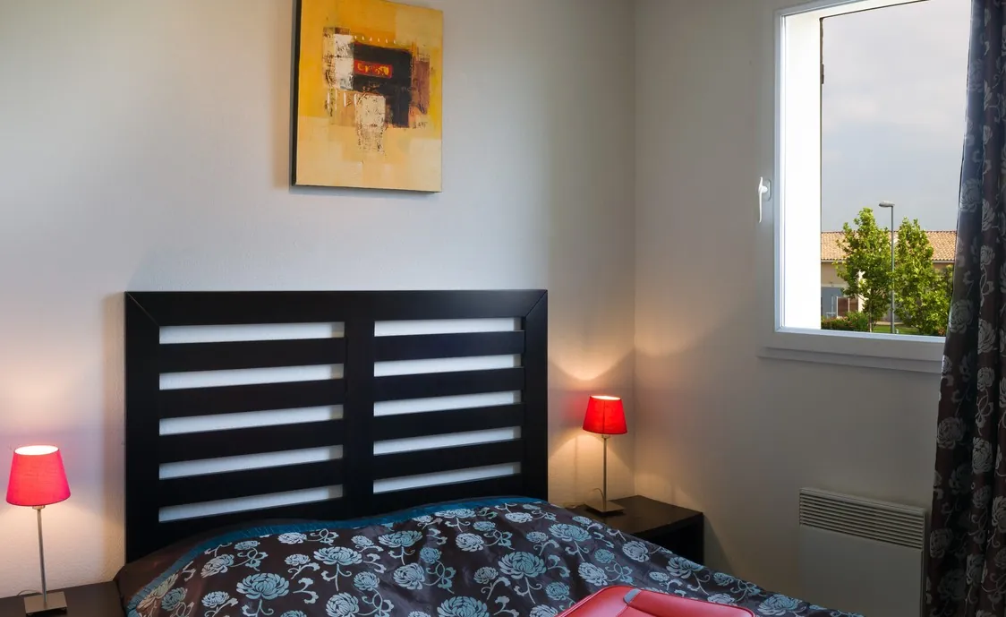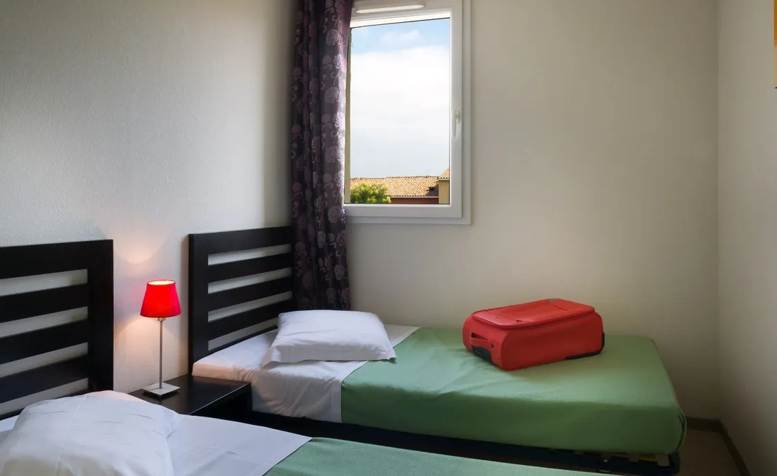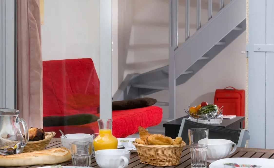Das 3 Zimmer-Haus für 6 Personen (40m²) stellt sich wie folgt zusammen: im Erdgeschoss, ein Wohnzimmer mit Schlafsofa (140×190 cm). Im Obergeschoss, ein Schlafzimmer mit einem Doppelbett (140 x 190 cm) und ein zweites Schlafzimmer mit 2 Einzelbetten (90 x 190 cm) und ein Badezimmer.