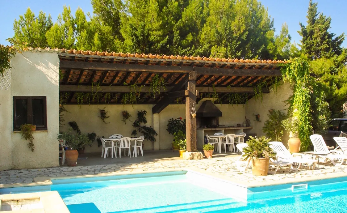 Großes gesichertes Schwimmbecken (13 m * 9 m, nur von Mitte Mai bis Mitte Oktober geöffnet), das mit zwei anderen Villen geteilt werden muss.