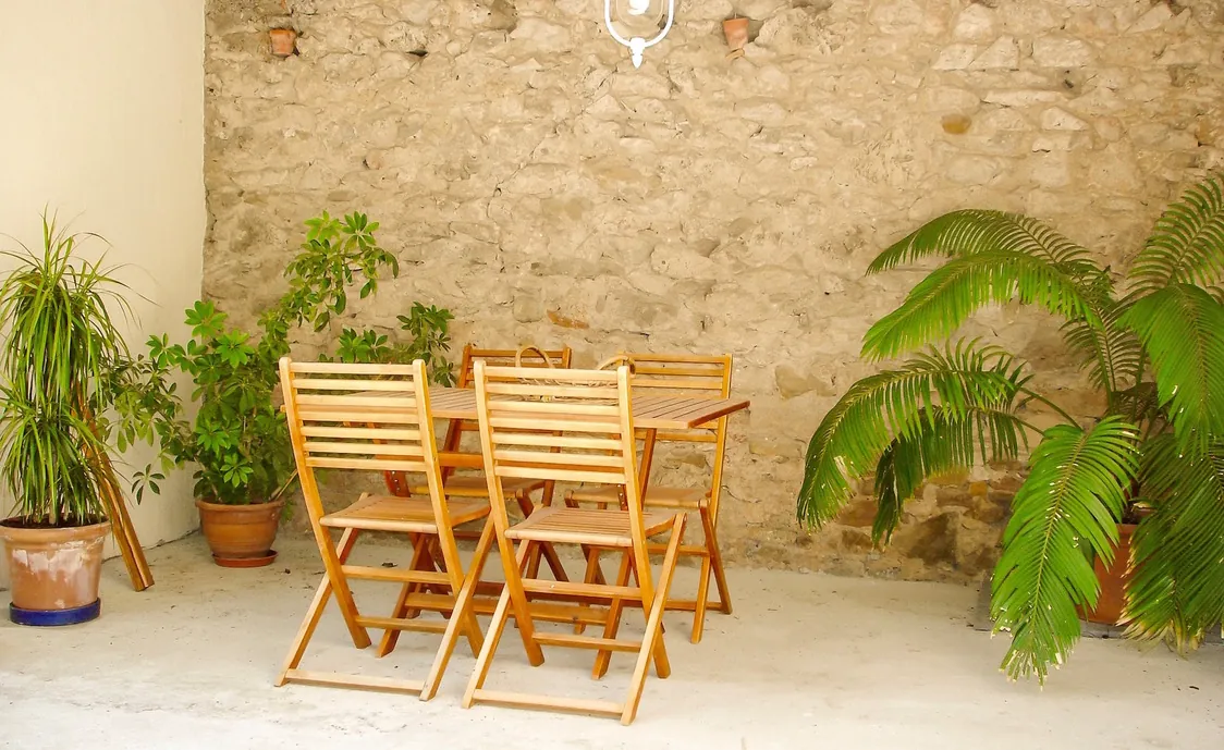 - Outdoor: Eingezäunter Pool, Garten, Gartenmöbel, Grill, Liegestühle, Terrasse